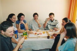 Hlavnými aktérmi pražskej kolaudácie boli Lenka s Tiborom, ktorí sa nasťahovali do nového bytu. Prijali sme ich pozvanie a v piatok vyrazili Alenka, Zdenka, Komando a ja spolu z Bratislavy. Posádka druhého vozidla v zložení Stanka a Yanoo vyrazili z Banskej Bystrice. Po ceste sme sa zastavili v obchode. Nakúpili sme vecné dary, na ktoré dobre sadá prach a ťažko sa čistia, to aby si našu kolaudačnú návštevu dobre zapamätali. Plyšový mobilný telefón nadpriemerných rozmerov hovorí za všetko. Určite ich potešila aj sada ručného náradia, TESCO klince a šmirgeľ toho najväčšieho zrna. Večer sme začali prehliadkou bytu. Po príchode druhej posádky sme zvyšok večera strávili pri chlebíkoch, “trojhlavom drakovi” a iných nápojoch.