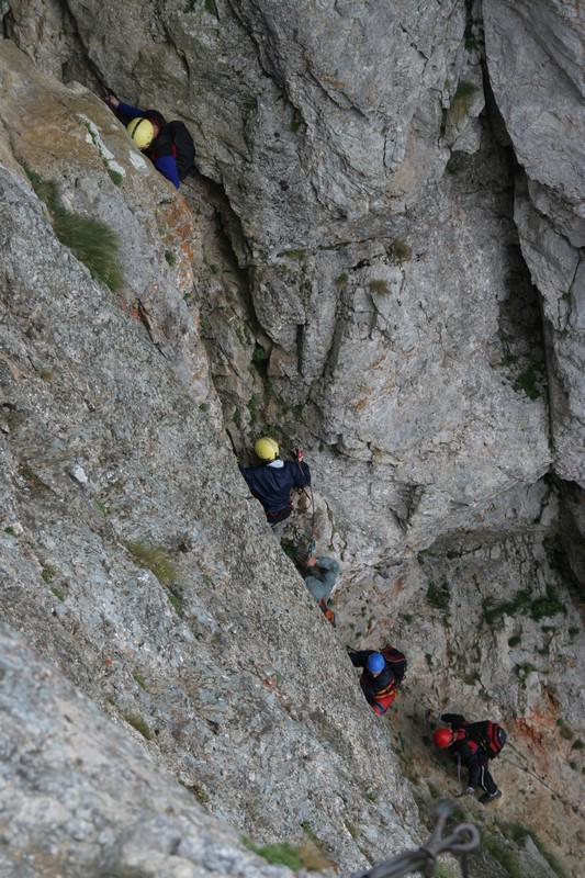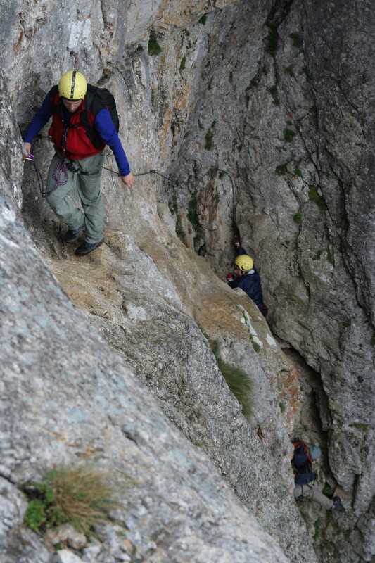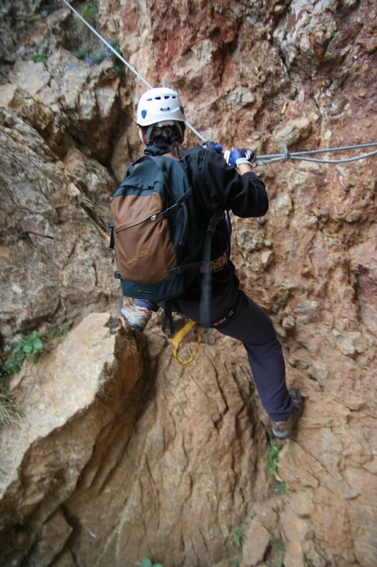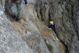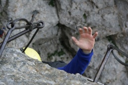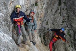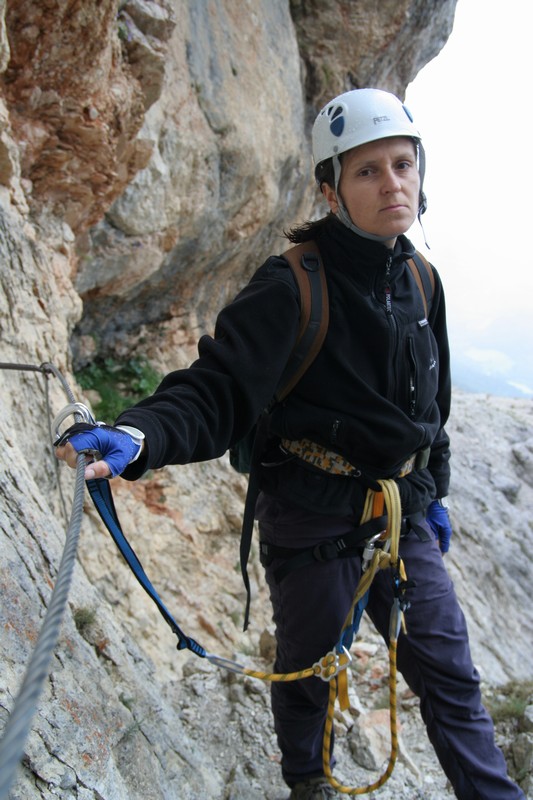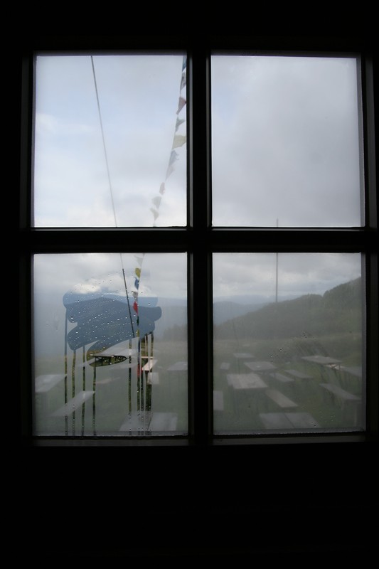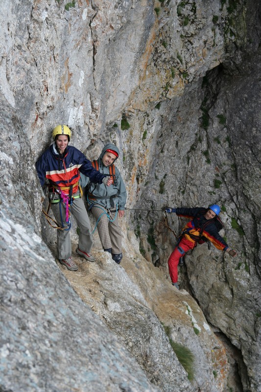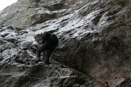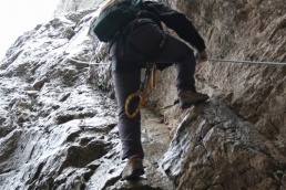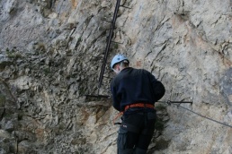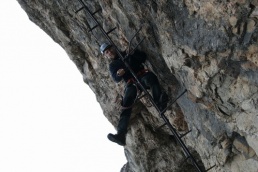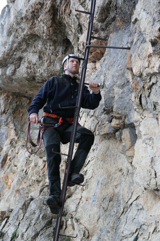 Záverečná bodka po splave nedala na seba dlho čakať. Sobotným predsavzatím sa opäť stal Rax Alpen. Vojťas už v piatok z Rakúska hlásil pomerne pekné počasie. Rozhodol sa, že prespí na mieste a ráno sa k nemu pridáme. Zraz bol u Komanda. Vyrazili sme o 7:30 v sobotu Alenka, Zdenka, Komando a ja. Po ceste v Rusovciach k nám prisadol Martin, bývalý dizajnér TrekSportu. Približujúc sa k parkovisku, na čelnom skle pribúdali dažďové kvapky. Vojťasova ranná SMS o večernej bezoblačnej oblohe plnej hviezd vyznievala tragikomicky. Púšťame stierače. Na parkovisku okrem Vojťasa prespali ďalší odvážlivci, prevažne z Čiech. Posledné uľavenie si v udržiavanom sociálnom zariadení a balíme. Presúvame sa autami na miesto nástupu. Cesta je mokrá, viditeľnosť do 100 metrov. Malé parkovisko, zastrčené tesne pod horou nie je preplnené. Čakáme, kým dážď zoslabne. Dlhú chvíľu si krátime pojedaním prinesených potravinových zásob. Zamýšľame sa, či to má vôbec význam štverať sa po mokrej skale a ešte k tomu za dažďa. Minule sme rovnaký výstup absolvovali za trvalého sneženia a pod bodom mrazu. Dážď by mal byť o niečo príjemnejší. No nič, vyrazíme a uvidíme. Nezobrať si pršiplášť bola hádam najväčšia chyba, ktorej som sa spolu so Zdenkou dopustil. Nástup pod skalu trval hodinu aj čosi. Upevnili sme si sedáky, feratové sety a vyrazili do steny. Hoci jemne pršalo, stále to bolo lepšie ako v zime. Skala a oceľové laná neboli namrazené, no lezenie aj tak vyžadovalo sústredenie. V polovici stúpania začal fúkať silný vietor. V povetrí poletovali zmrznuté krúpy. Neostalo nič iné, len sa posilniť dobre vychladeným pivom. Fotím zriedkavo. Predná šošovka pri zložení krytu objektívu okamžite namokne. Posledná tretina stúpania viedla náveternou stranou svahu. Snáď všetky prírodné živly sa v tej chvíli spolčili proti nám. Vzdorujeme a napokon úspešne zdolávame vrchol hory. Komando s Alenkou pokračujú pár sto metrov k vrcholu, ostatní, čo sme tu už boli, zostupujeme do neďalekej chaty. Nie že by v nej nekúrili, ale pootvorené dvere spravili svoje. Objednávame polievky, sladkosti a sušíme do nitky premočené veci. Za silného vetra opúšťame chatu. Po strmom suťovom svahu zostupujeme nadol. Vojťasovi to nedá a v teréne hľadá nástup na druhú feratu. Našťastie sa mu na ňu nepodarí presvedčiť ani jedného z nás, a tak sa ešte za svetla môžeme dostať domov. René