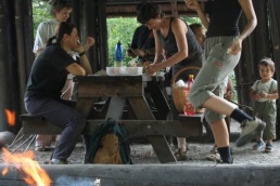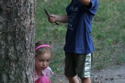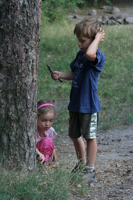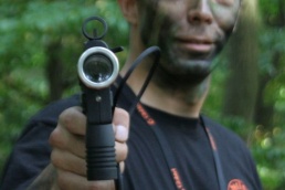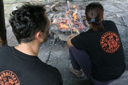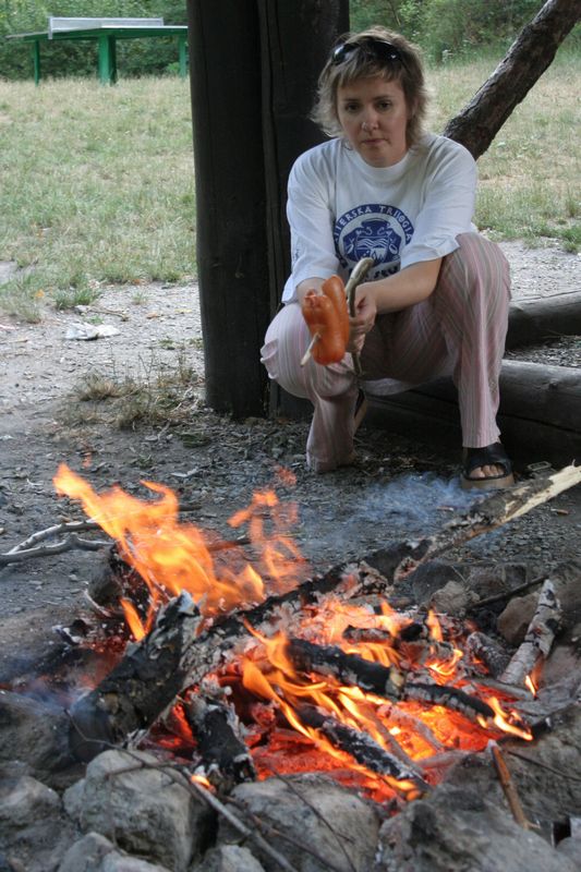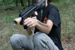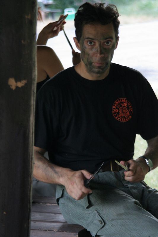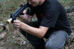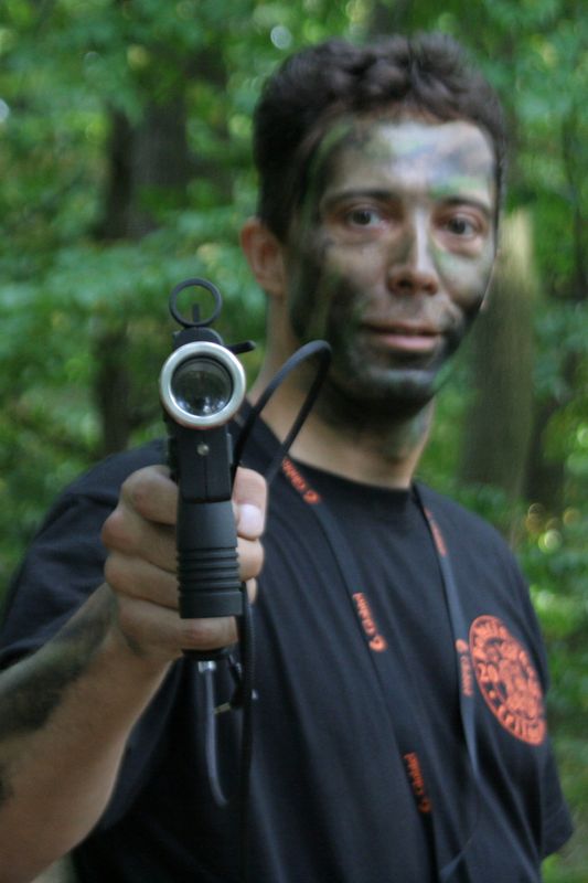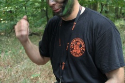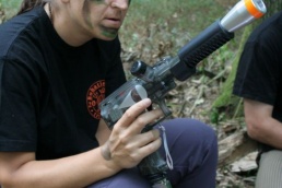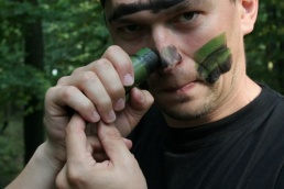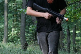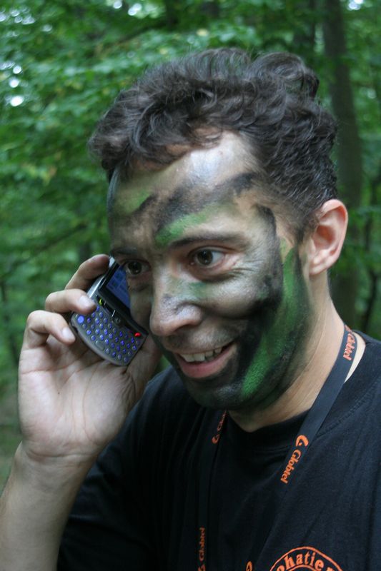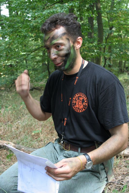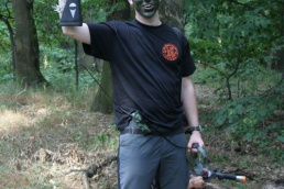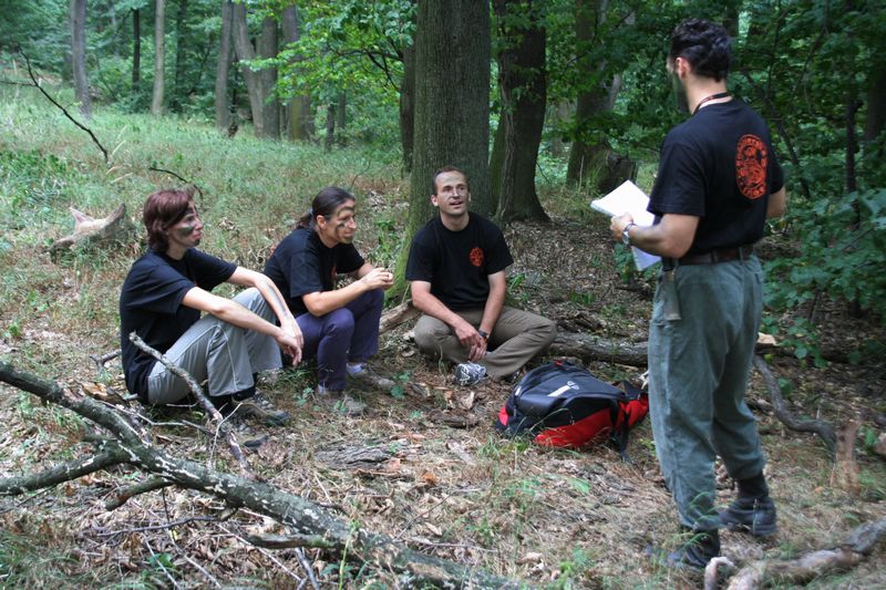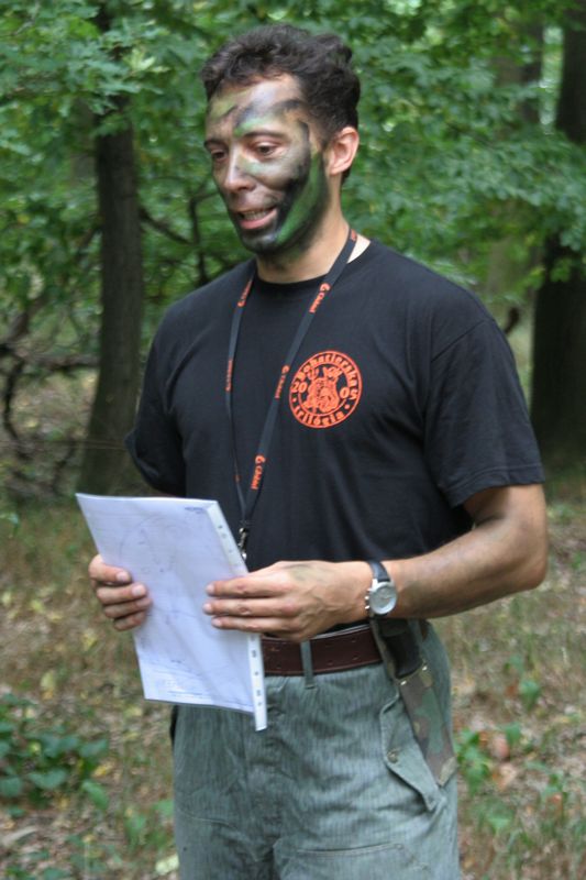 Komandov mail o plánovanej tajnej víkendovej akcii vzbudil pozornosť v nejednom z nás. Okrem potvrdenej účasti na 16:00 od nás vyžadoval, aby sme prišli najlepšie v maskáčových nohaviciach a v čiernom bohatierskom tričku z roku 2005. Hádam zvedavosť z chystaného prekvapenia nás priviedli pod úpätie hory v Bratislave - Rači. Postupne sme sa pozbierali piati bohatieri. Zatiaľ čo sme čakali na Emila, na naše tváre pribudli viditeľné pásy vojenskej maskovacej kaki farby. Dokonale zamaskovaní sme sa presunuli do lesa. Zakrátko sme sa ocitli vo vyhradenom kruhu z napílených konárov. Komando predniesol krátky príhovor a oboznámil nás s princípom hry. Jedná sa o hru podobnú paint-ballu, akurát táto využíva infračervený lúč ako strelivo a terčom sú senzory, umiestnené na hlavách súperov. Každý má 3 životy, 3 zásobníky po 30 nábojov. Stav je zobrazený na displeji zbrane. O zásahu je informovaný hlasom z reproduktora zbrane. Keď zasiahne súpera, rozsvietia sa na ňom červené svetielka v senzoroch na hlave. Po treťom smrteľnom zásahu je zbraň vyradená z funkčnosti. Na jej opätovnú aktiváciu je potrebný nabíjací konektor, ktorý nám Komando na začiatku hry samozrejme zobral. Stihli sme si zahrať tri kolá po 15 minút. Prvé dve boli individuálne na princípe „každý proti každému", to posledné bolo tímové po troch hráčoch. Vyhral ten tím, ktorého aspoň jeden člen útok zákerných maskovaných nepriateľov prežil. Pomaly sa zbiehali rodinní príslušníci s deťmi. Ostatne v nich sme pri príchode vzbudili panický strach, zdesenie, no i slzy v očiach. Nepomohlo ani ubezpečovanie Emila so zbraňou v ruke, že sa jedná len o takú hračku. Na moje maskovanie si zvykli až po dlhšom čase, ktorý sme využili na prihotovenie dreva. Ženy medzitým nakrájali špekáčiky, slaninku, zeleninu a mohlo sa opekať. Pohoda pri ohni trvala až do 21:00. Keď sme opúšťali verejné ohnisko, akurát sa rozpršalo, a to urýchlilo naše lúčenie. Nie však na dlho. Máme pred sebou splav Lužnice, tak zatiaľ...René