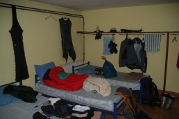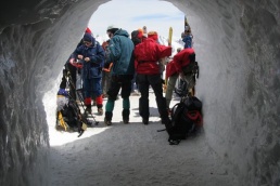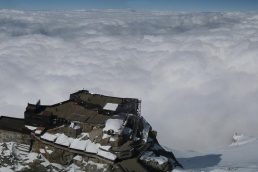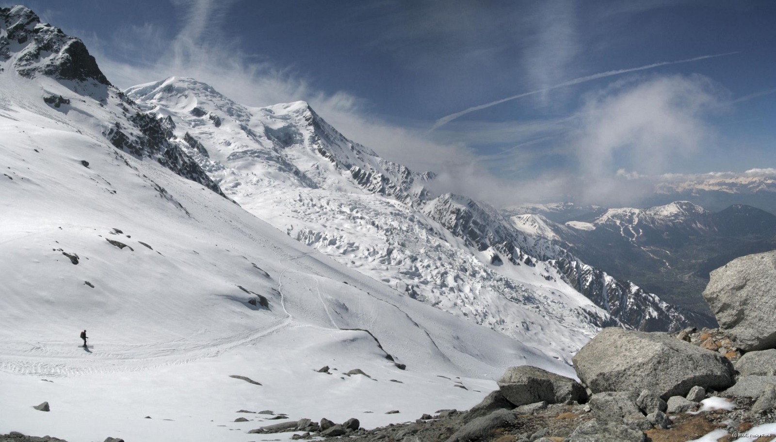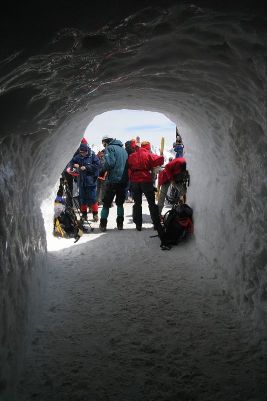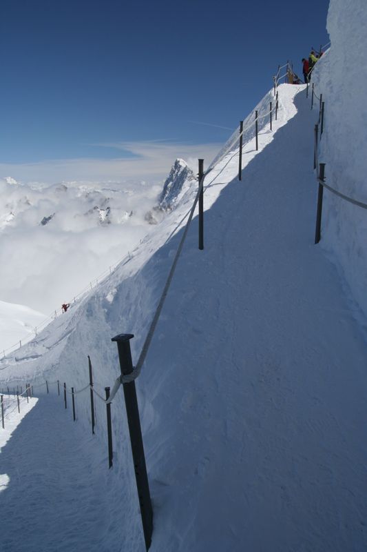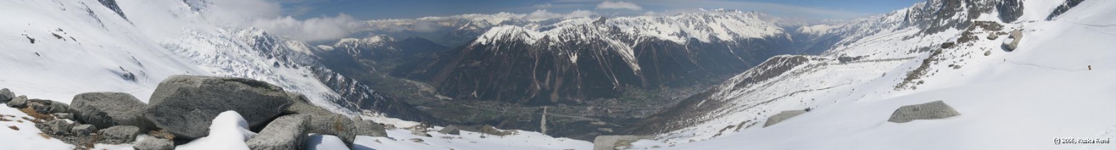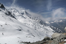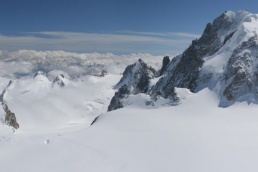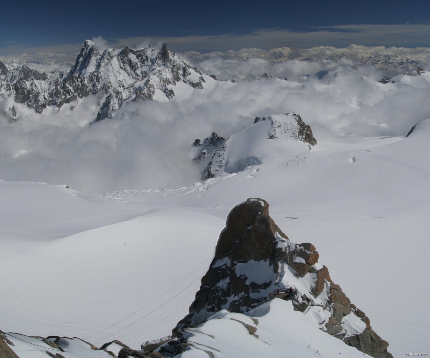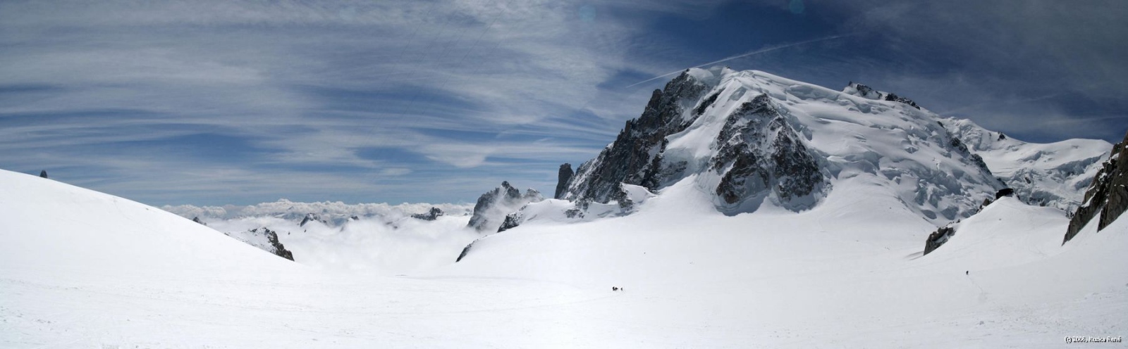 Ranné slnko, pár kilometrov pred našim cieľom, zarezalo svoje ostré lúče do nevyspaných očí vodiča. Stretávame sa s chalanmi pod lanovkou neďaleko turistickej ubytovne. Rýchlo vybaľujeme veci, prezliekame sa a vyrážame na lanovku na Aiguille Du Midi 3842 m.n.m. V prestupovej stanici prechádzame poslednou vrstvou hustých oblakov, nad ktorými vládlo krásne slnečné počasie a plechovo modrá obloha. Na hornú stanicu sme sa dostali v rekordne krátkom čase. Pobyt v týchto výškach, bez predošlej aklimatizácie a spánku, spôsobuje pri kráčaní po schodoch na terasu chaty závrate. Výhľady na masív a okolité horstvo je prenádherné. Mostom sa dostávame do druhého skalného výbežku, odkiaľ je nástup na takmer 17 kilometrov dlhú zjazdovku. Po zlyžovaní prvého svahu a nespočetných pádoch som sa vážne zamyslel. Moje požičané skialpové lyže a nulové zjazdové skúsenosti s nimi sa ukázali byť neprekonateľnou prekážkou a radšej ako nekontrolovaný pád do ľadovcovej trhliny volím ústup smerom na vrchol. Ostatní pokračujú v zjazde, zatiaľ čo ja stúpam s lyžami na batohu a vychutnávam si vysokohorský pobyt. Zišli sme sa pred ubytovňou okolo piatej poobede. Všetci trpíme nedostatkom spánku, no keďže chalanov čaká náročný výstup na vrchol, venujú baleniu podstatne viac času. V tej výške cítiť každý nepotrebný gram. Zdenka zaspala vo vedľajšej izbe a vôbec nereaguje na búchanie Mária na dvere. No čo, pobalí sa až ráno.