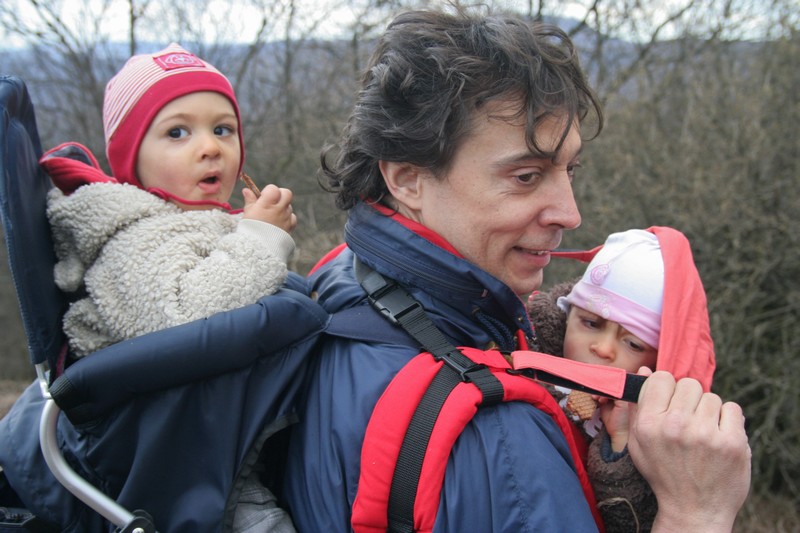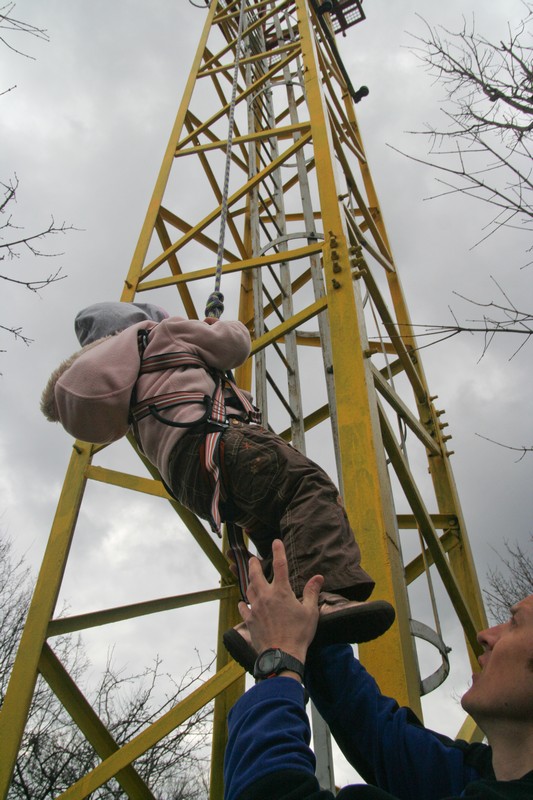 Predveľkonočný čas je možné využiť až zneužiť viacerými spôsobmi. Mnou najviac nateraz nepochopený je umývanie okien. Preboha, načo? O týždeň sú rovnako zas...špinené ako pred týždňom. Doktor Iľko hlásil pekné jarné počasie na víkend, a čo povie doktor Iľko, to je sväté, a čo navrhne Vojťas, to je posvätné a neodmieta sa. Druhý víkend po sebe strávený v Malých Karpatách, tentoraz Veľký Petrklín so signálnou vežou neďaleko Sološnice. Začiatok bol stanovený na desiatu hodinu a to už po rannom posune času zo zimného na letný. Snáď pekné počasie vyhnalo policajné hliadky, ktoré zastavili Anténku pri zjazde z diaľnice, a našu posádku pol kilometra pred cieľovým parkoviskom. Anténka prešla v pohode, no ja som pri sebe nemal ani doklady, ani peniaze. Najprv mi príslušník chcel odobrať vodičák, ktorý som aj tak nemal, tak aspoň udeliť blokovú pokutu 60 Eur, na ktorej zaplatenie som taktiež nemal ani peniaze a ani platobnú kartu. Zachránila ma Zdenka, ktorá vo svojej peňaženke mala len 20 Eur a stravné lístky, ktoré však páni policajti ležérne a s humorom odmietli prijať. Po zaplatení dvacky sa po chvíli vrátil a vrátil desinu, aby sme si za čo mali kúpiť desinu. Milé. Postretali sme sa na parkovisku pred potravinami, doplnili proviant a presunuli o posledných pár desiatok metrov na parkovisko pod horou, kde sa tažba dreva končí a začína. Dospeláci naložili menej chodiace deťúrence na krosná, chodiace si to odkráčali a plíživým krokom sme sa všetci dostali pod nástup do terénu. Strmosť svahu dramatizovalo šmykľavé popadané lístie, čakajúce na zahnívajúci proces, a valiace sa kamene a kamienky, mnohé z nich v tvare dokonalej gule. Tento úkaz sme si nevedeli odborne vysvetliť. No to bude zostup. Tentoraz nebolo tak veterno ako minulý víkend, avšak o poznanie chladnejšie. Slnko zavše vykuklo spomedzi hrozivo vyzerajúcich mrakov, a už o pár chvíľ už pálilo do tvárí, a opäť šup za mrak. Úvodný strmák vystriedal rovnejší terén, s rozprávkovými stromami plnými tajuplných dier a výdutí. Na vrchol viedla miestnymi nadšencami značkovaná cesta, ktorú nenájdete na žiadnej turistickej mape. Výhľad nič moc, no po vystúpení na signálnu vežu do výšky 20 metrov dostal nový 3D rozmer. Vojťas si na plošine rozložil svoje cárachy a zlaňovanie v detskom sedáku mohlo začať. Tonko bol prvý, za nim Elka, Jasmínka, Romi, Janka... Po prekonaní prvotného strachu si to niektoré deťúrence zopakovali ešte raz. Vietor trocha zosilnel a na plošine začala byť väčšia zima. To už zlanila posledná Janka. Po poslednom občerstvení a teplom čaji z termosky nastal hromadný zostup. Aj pri najväčšej opatrnosti sa neuveriteľne šmýkalo a kolená dostávali zabrať, o čom svedčili špinavé zadky nejedného z nás. Asfaltkou sme dokráčali popred horáreň a brehmi zarastenými famózne voňajúcim medvedím cesnakom. Ešte posledný pokec pred autami a hurá domov.