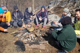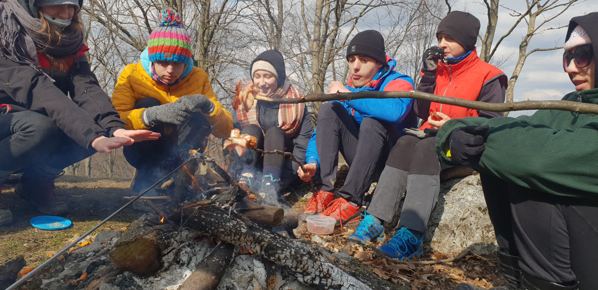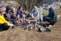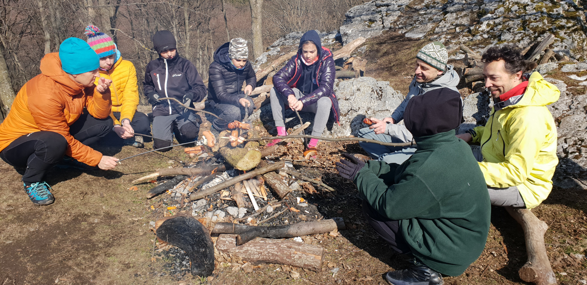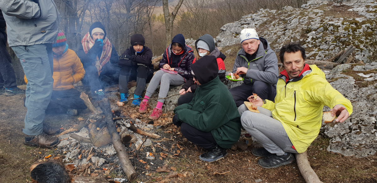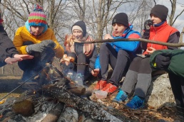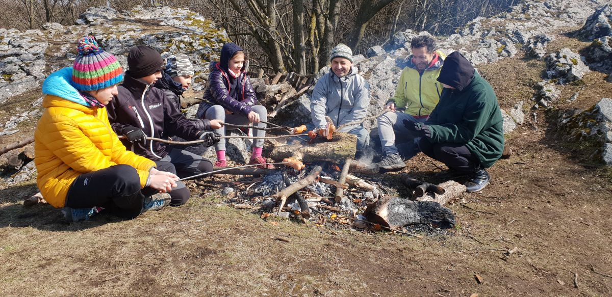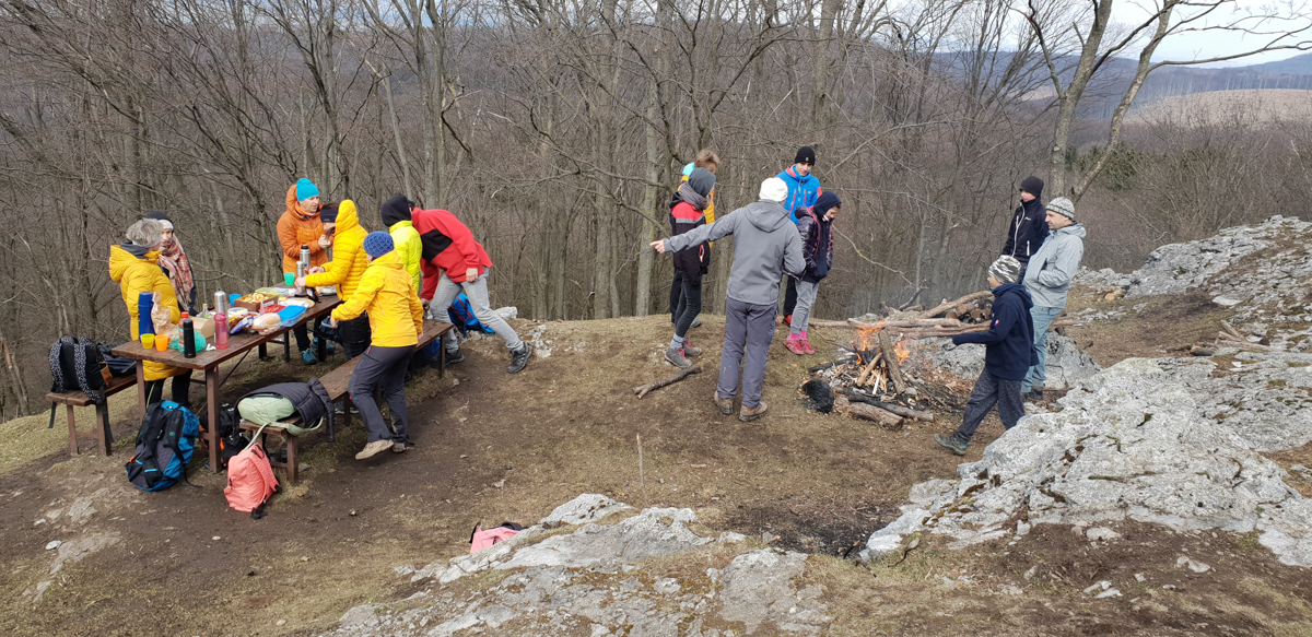 Postupne si decká a mladí sokolíci posadali okolo vatry ako dvanásť mesiačikov. Stúpajúci dym zo slaninky prevoňal les až taká radosť. Slnečné lúče roztápali zvyšky snehu zo včerajšieho sneženia. Veru, tento víkend nepatril medzi najteplejšie, a keď zašlo slnko za oblaky, pri neustálom vetre bolo aj tých +6 stupňov pocitovo okolo nuly.