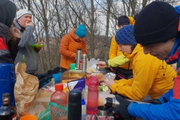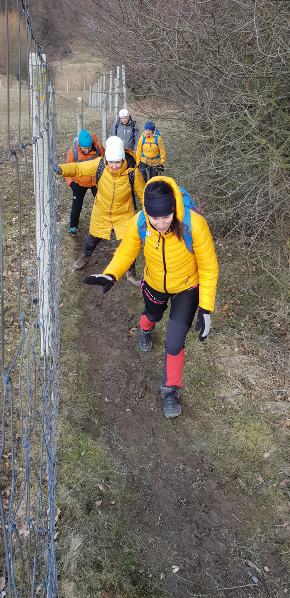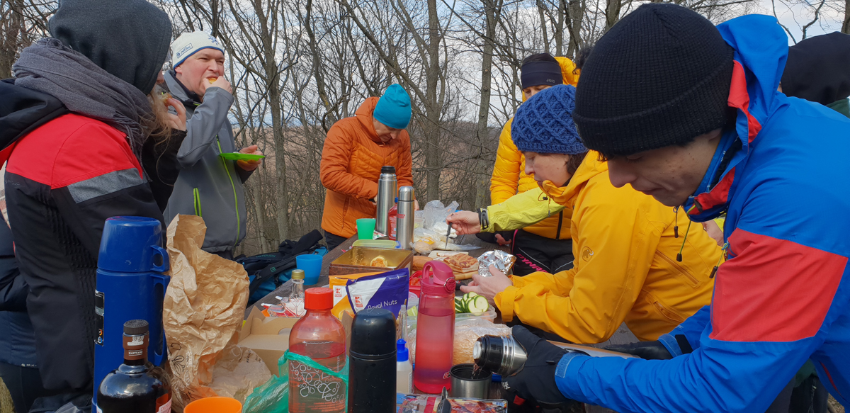Po naplnení základných bohatierskych potrieb a spoločnej fotografii sa skupina vydala ďalej, aby ešte dva razy prekonala prevýšenie, až napokon zostúpila popri konskej obore a cyklotrailovej cestičke k parkovisku. Sokolík Tonko ešte skočil do hrádze na malé masochistické osvieženie ľadovou vodou, ostatní sa mnohonásobne rozlúčili a dali si záväzok, že bohatierka bude pokračovať aj napriek opatreniam. Však my už dačo vymyslíme. ;-)