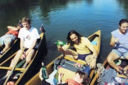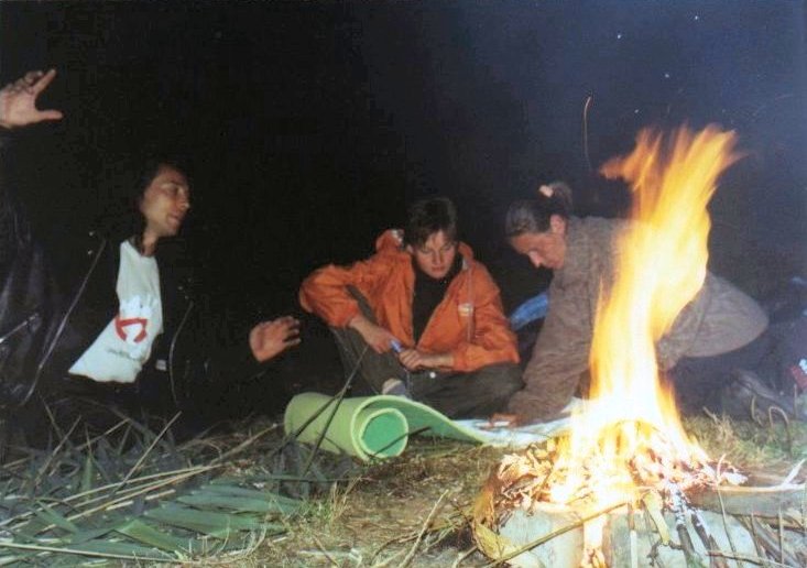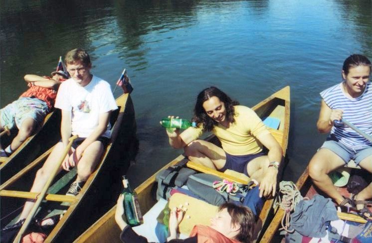 L: také trošku vratké, ale na Moravu akurát R: spráskali sme sa ako takí… L: …starí decenťáci, veď René sa nikdy poriadne nespráskal R: niektorí aj zaspali na lodi L: kto zaspal? R: prespali sme… L: …pod širákom a tí rozumní, čo boli s nami, tak v stanoch R: ktosi pozeral na MIR (vtedy ešte lietal) L: poznali sme ho len podľa toho, že stále lietal rovnakou trasou, ale ktovie, čo to vlastne bolo… |