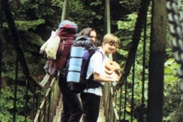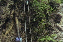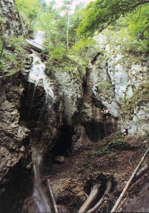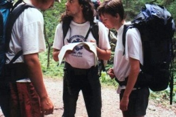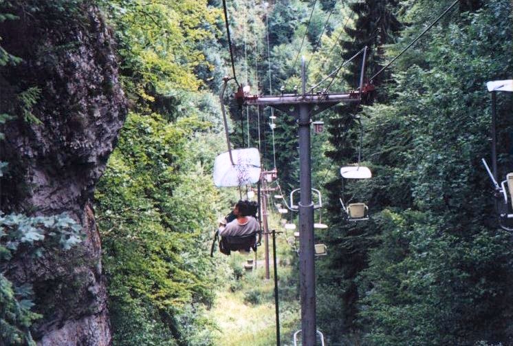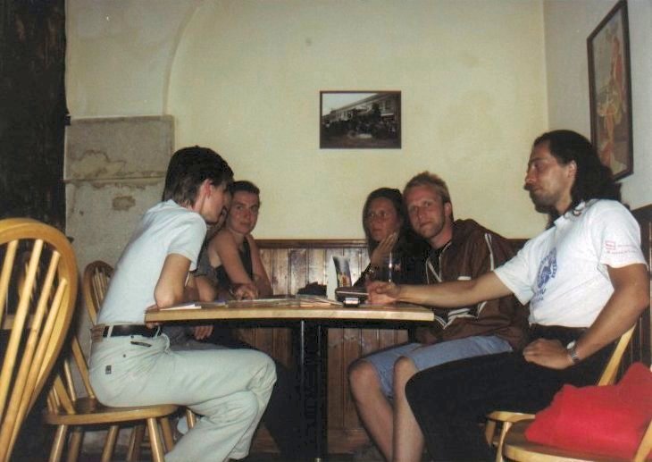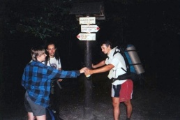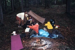 L: normálne sa ľudia šmýkajú na ľade, ale my sme sa na blate a to ešte vôbec nebolo Kataríny. Teraz som ale zmätená, lebo jedno ráno sme sa šmýkali aj na takých ozajstných šmýkačkách, ktoré ústili do jazera, ale bolo treba do nich pumpovať vodu, aby sa to šmýkalo… a ja som nemala odvahu to vtedy vyskúšať. Asi sa tam budeme musieť ísť ešte niekedy pozrieť. R: V ten deň sa Vojťas pokúsil o sólo výstup k vysielaču, ale cestou dostal ešte dva defekty. Ty, Lenka, si sa nám stratila. Po ceste sme pojedli kopu nezrelých jabĺk, hrušiek a sliviek, takže sme spoločne dostali hnačku. Bolo to v tom útulnom hostinci, kde sme boli momentálne na obede. Poobede sme absolvovali dlhočizné stúpanie a rovnako dlhý zjazd až k rybníku. Tam sme aj prespali. Okolo 3:00 ráno začalo liať a pršalo až do rána. |