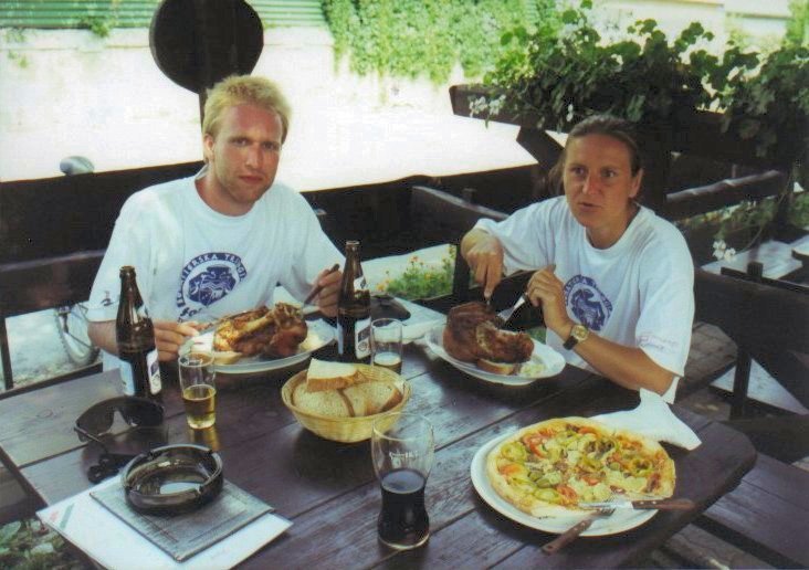 L: to ti vám bolo ako plavba proti prúdu R: vykladanie na Devíne L: je to čudné, ale zasa sme sa všetci vylodili… i keď niektorí skôr, niektorí neskôr (neskôr zasa tí múdri, čo sa cestou stavili v krčme)… R: večer krčma u Medveďa L: mali sme čo doháňať, doháňať myslím ako to, čo múdri nadbehli v krčme pri Morave, naháňať nebolo čo, lebo žiadne medvede tam neboli a ktovie, akoby to skončilo, keby tam boli, takto to skončilo tak, že sme si pochutili na kuracinke zabalenej v zemiakových plackách R: plán na cyklo… L: …sme vymysleli akčný ![]() |