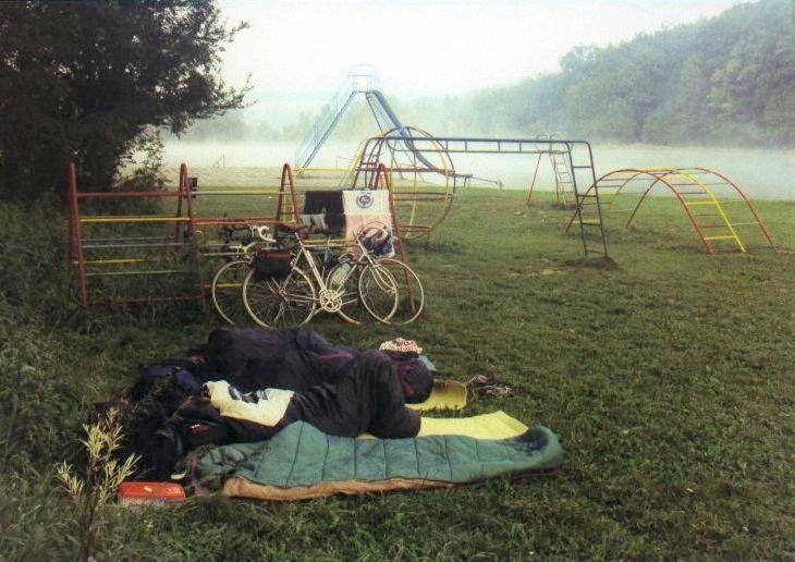 L: alebo na východ, proste cestou-necestou, ale výnimočne to bolo naozaj cestou, keďže sme boli na bicykloch R: po ceste začalo pršať L: to nás vítalo späť naše drahé Slovensko… R: dorážame až do Trenčína L: Vojťasovi to ešte nestačilo a tak sa odpája a pokračuje na bicykli až niekam do Tramtárie (tuším až do Nového Mesta n.V.) R: boli sme na Trenčianskom hrade L: konečne som sa dostala na miesta, ktoré som dovtedy len so zatajeným dychom pozorovala pri ceste vlakom R: spíme u mňa L: to sa spalo, vo voňavých perinách… |