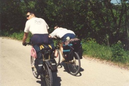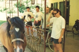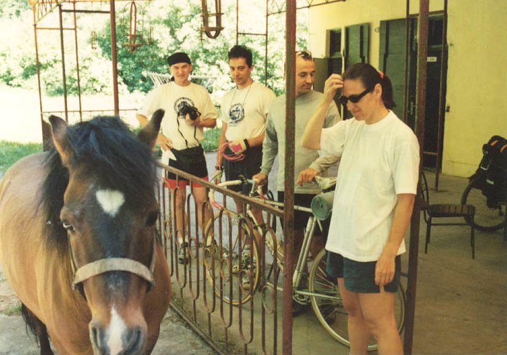 8:00 – Budíček, raňajky v „Ranči“. Praženica, párky s horčicou a čaj. Je už 9:45 a posledné balenie a úprava bicyklov sa končia. Ešte jedno foto s koňom a vyrážame.