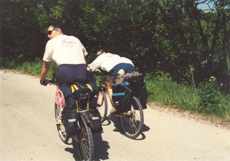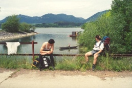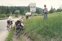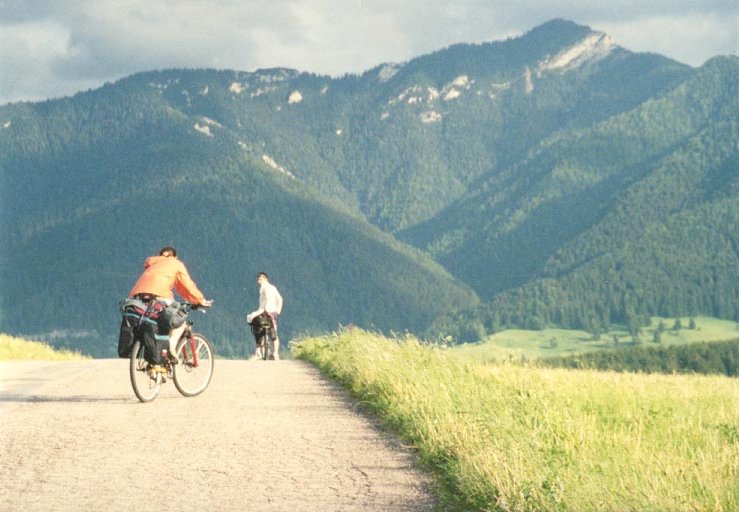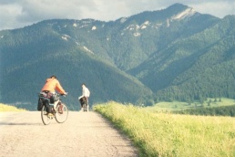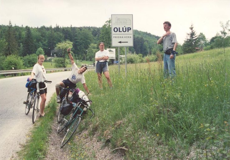 17.09 – Koniec brutálneho zjazdu. Teraz sme v Červenej Skale, trocha vymrznutí, ale v pohode. Občas bolo cítiť pár kvapiek vo vzduchu, ale zatiaľ je počasie na našej strane. Do Heľpy ostáva 16 km. Anka sa už najedla, Komando uvažuje o prezutí do kanád, pričom tu stále seká nožíkom do trávy. Zdenka sa prezliekla do pyžama, aby mohla aj bicyklovať aj spať.
