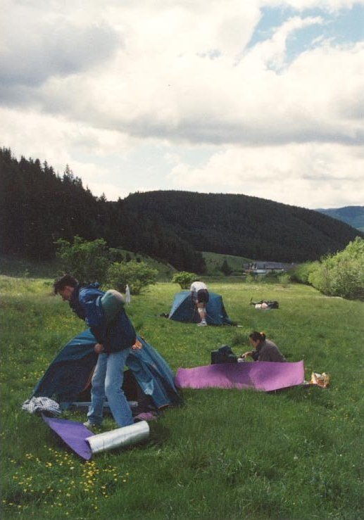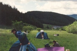 21:26 – Už sme na konci doliny, kúsok od Kvačian. Stany sú postavené, opekáme drevo a chystáme jedlo. Komando zbehol do dediny po rum. To zas bude noc. Už nevidím, čo píšem. Idem sa teda najesť.