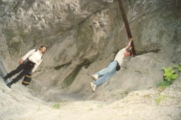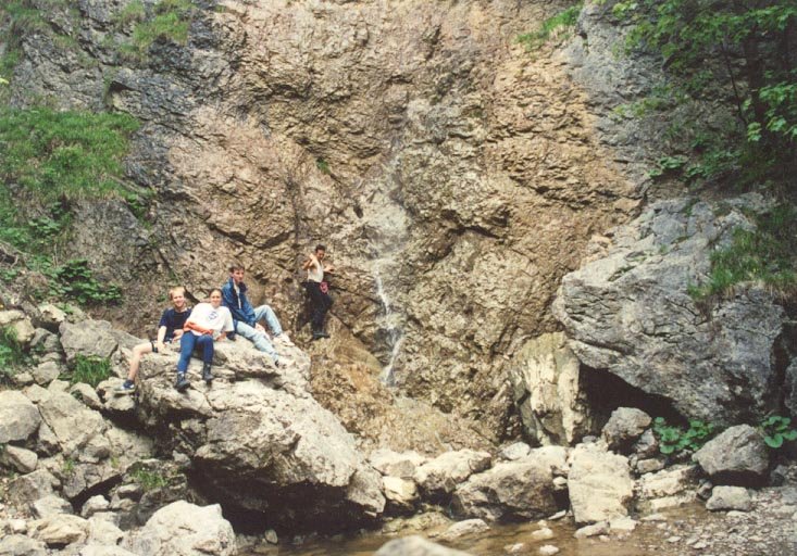 13:12 – Sedíme pred Gombaseckou jaskyňou, zbalení tak na 97%. Tu sme sa stretli s Ankou, martinskou bohatierkou, ktorá prišla samostatne z Liptovského Mikuláša vlakom cez Košice.