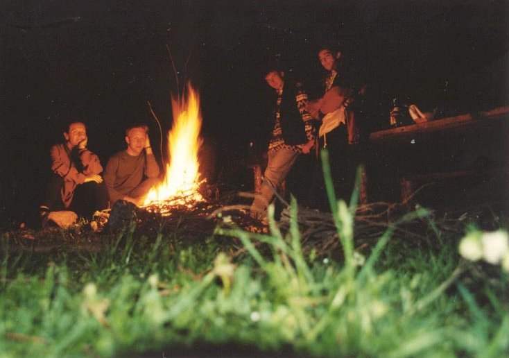 22:35 – Po prvom pokuse postaviť stany v tej večernej kose sa znova stretávame pri stole. Druhá runda, rum a čaj, podaktorí pivo. Nikomu sa nechce do tej zimy. V „Ranči“ sa stretáva miestna skupina asi 10 bývalých trampov. Hrá gitara, staré songy dokresľujú starodávnu atmosféru nocí pod hviezdnou oblohou. Anka zaspáva na stole, Vojťas to vzdáva, len Komando so svojim optimizmom vyčnieva z radu.