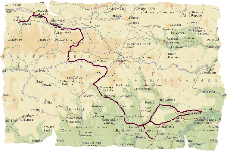 Gombasek - Plešivec - Jeľšava - Revúca - Muráň - Muránska Huta - Červená Skala - Heľpa (75 km)