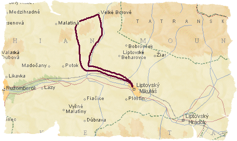 Liptovský Mikuláš - Prosiek - Prosiecka dolina - Veľké Borové - Kvačany - Liptovská Mara - Liptovský Mikuláš