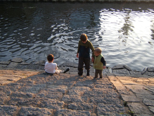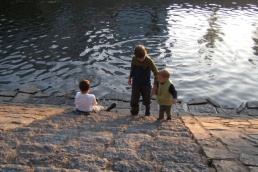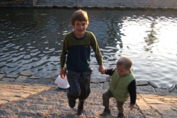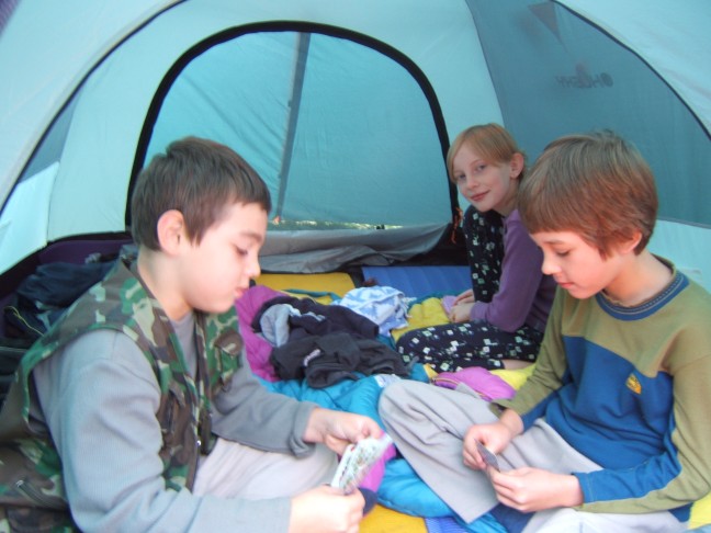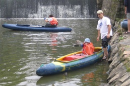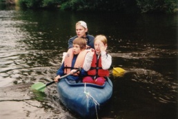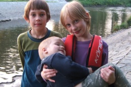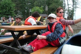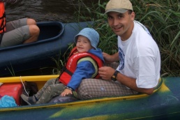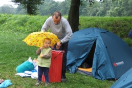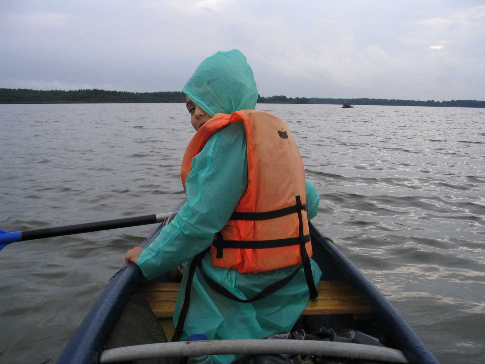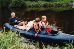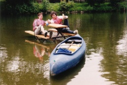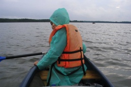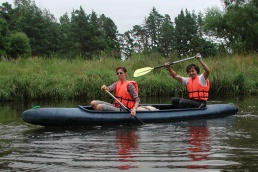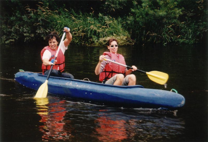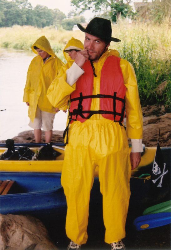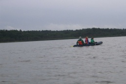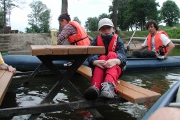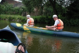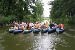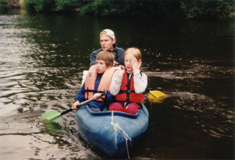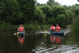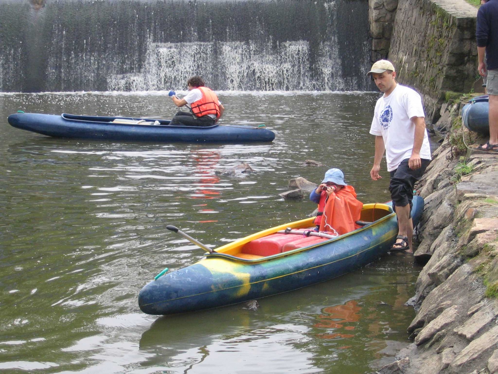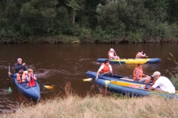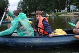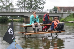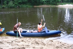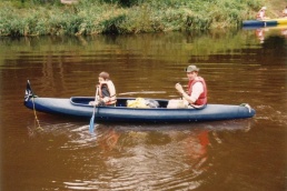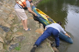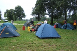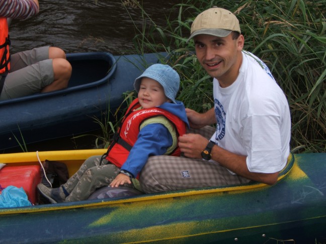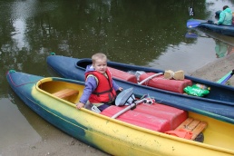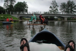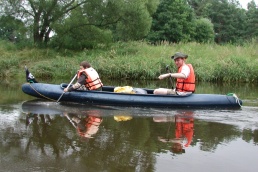 Na svitaní sme našli rieku! Bola pár metrov za bufetom, ale my sme sa včera dostali len po bufet. Ráno o deviatej prišlo z požičovne 7 kánoí typu Vydra, no namiesto 14 barelov na batožinu nám dodali len 8. Zrejme komunikačný šum (ale skôr neschopnosť požičovne) spôsobil toto nepríjemne nedorozumenie. Nedali nám ani náhradné vodácke vrecia, iba akési igelity, svojim tvarom nápadne pripomínajúce vrecia do odpadkových košov. No nič, musíme sa pobaliť tak, aby hlavne spacáky a veci na spanie boli v bareloch, ostatné dáme do našich prinesených igelitových vriec. Netrvali by sme na tých bareloch, keby k nám bolo počasie viac naklonené. Ráno bola zima a zatiahnutá obloha akurát na spadnutie. Všetky zbytočnosti nechávame v autách. O10:00 prišiel posledný prenosový voz (strojvedúci Vojťas, navigátor Helka, prísediaca Elka, ale skôr ležiaca a spiaca). Balenie trvalo až do 11:30, kedy prvá loď sadla na hladinu.