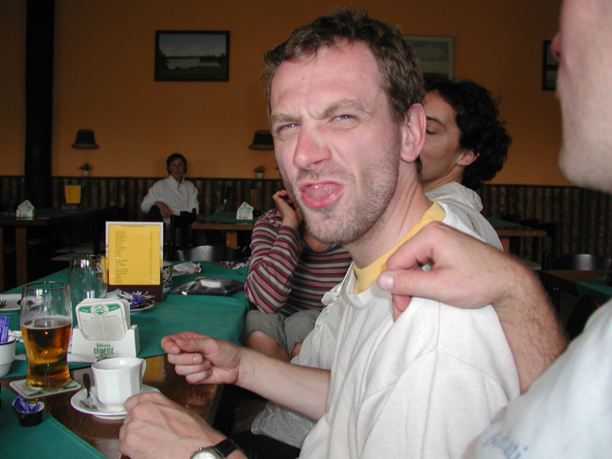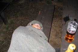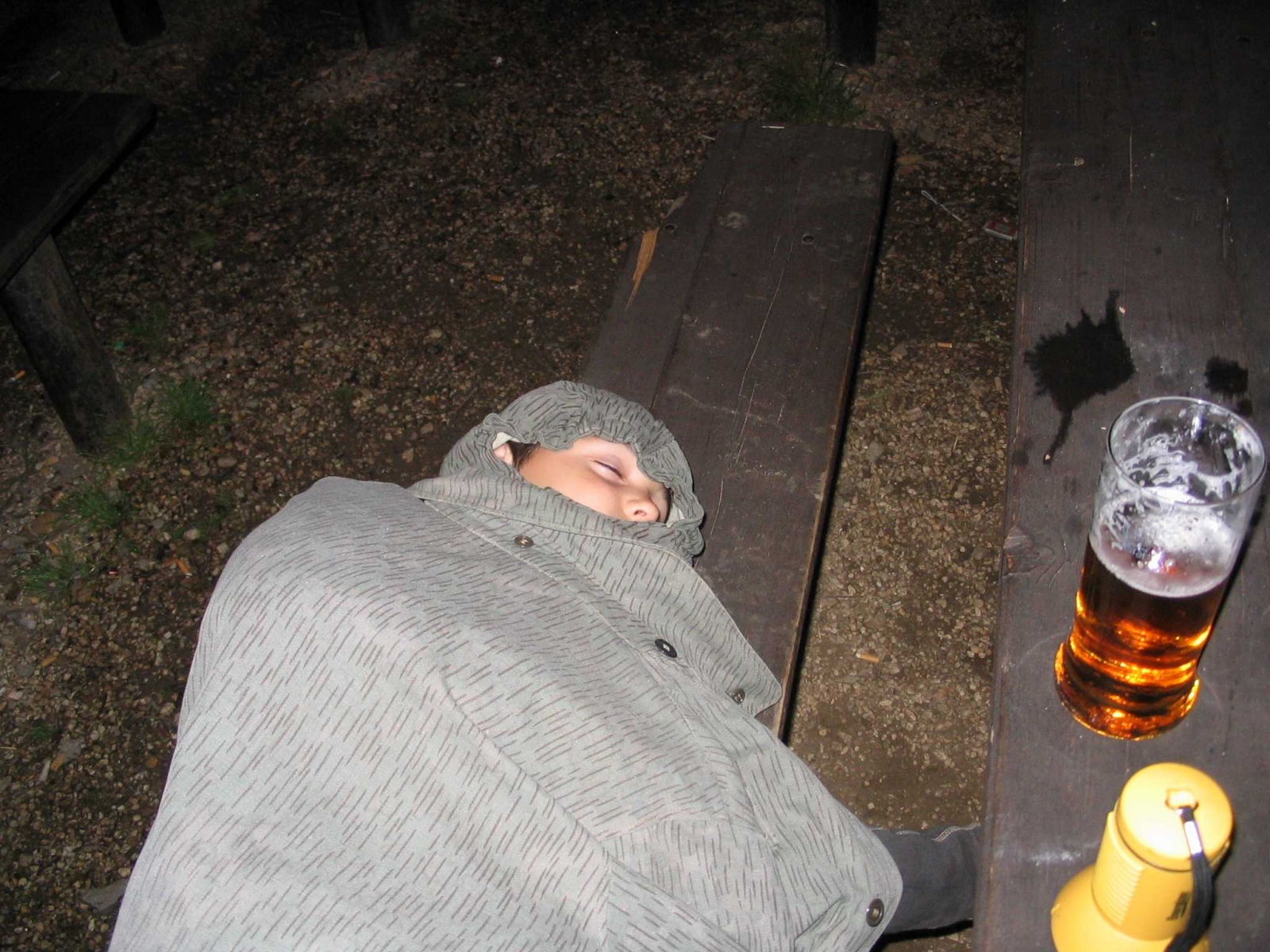 Po ceste všetkým vyhladlo. Mierne popŕcha. Zakotvili sme pod mostom v Staré Hlíně o 16:25, ktorý informoval o neďalekej reštaurácii. Každý si dal, na čo mal chuť. Zahrial čaj s rumom, polievka, hlavný chod, palacinky, nejaké to pivo. Skrátka sa jedlo a pilo, len aby sa čo najviac oddialil odchod do zimy a neprestávajúceho dažďa. O 18:00 už musíme vyraziť. Rieka je v prírodnej rezervácii Výtopa Rožmberka pomalšia a dáva tušiť, čo bude nasledovať. Za najväčšieho dažďa a protivetru sme vplávali do najväčšieho českého rybníka Rožmberk. Jeho hladina pripomínala rozbúrené more. Druhý breh v nedohľadne a na ňom akási biela budova. Ideme k nej, hádam to bude stavidlo. Dva a pol kilometra sa každá vydra pasovala s prírodnými živlami ako vedela. Kto si myslí, že tým trápenie skončilo, je na omyle. Prenášanie naložených lodiek cez hradný múr so sklonom snáď 60 stupňov a do výšky 6,2 metra a ich následné spúšťanie pod rovnakým uhlom po šmykľavej premoknutej tráve na ešte nižšie položenú hladinu bolo poriadne náročné. Do dedinky Lužnice prichádzame o 20:30. Trvá hodinu, kým sú postavené všetky stany a lode vytiahnuté na breh, vyčistené a poprevracané. V Kiosku stihneme posledný horúci čaj, instantnú polievku a nejaké to pivko. Záverečná o desiatej naštvala nejedného vodáka. Prinesené zásoby padli vhod – najprv Komandova whisky, potom moja domáca pálená od Vendelína Rozenberga z Prochota, preslávená na minuloročnom splave Hrona. Yanoo skúšal dochutiť domácu pálenú sušenou slivkou, natlačenou do plastovej fľaše. Problém nastal pri jej vyberaní. Po rozrezaní fľaše mu spadla na zem medzi kamienky. To mu zjavne nevadilo a tak ju pochrúmal. Už sme nemali čo piť, a zima stále viac útočila na naše kríže. Medzitým sa Tibor vybral s blikajúcou čelovkou na hlave pozrieť posádku odstaveného auta, zrejme niekoho z obsluhy bufetu, ktorú sme naposledy videli nasadať. Nikto z nás však nepostrehol, kedy z auta odišli, a tak sme tŕpli, či ich Tibor nevymákne v tom najlepšom. Mal prichystanú výhovorku, že keby dačo, tak je hľadač drahých kovov. Posledný z nápadov, ako sa dostať k alkoholu, bol nočný pochod na benzínovú pumpu. Zima nad nami našťastie zvíťazila a okolo 01:00 ráno zahnala do spacákov.