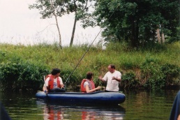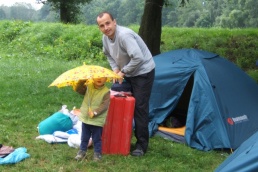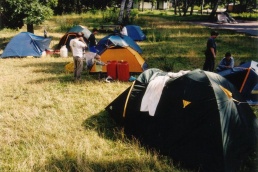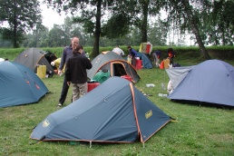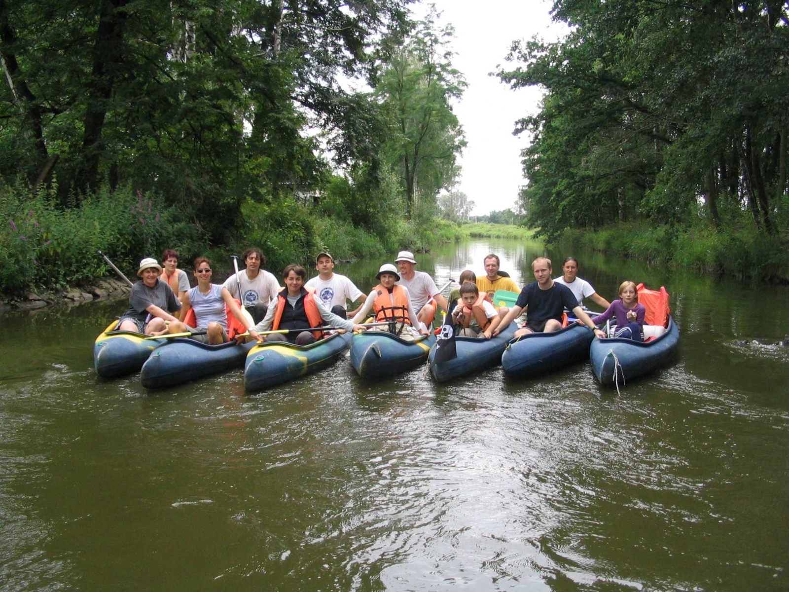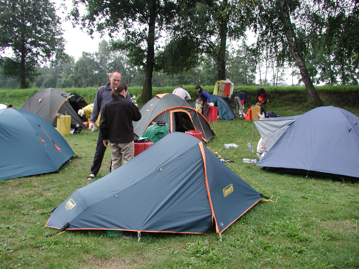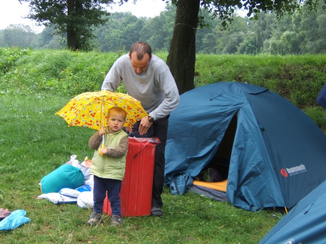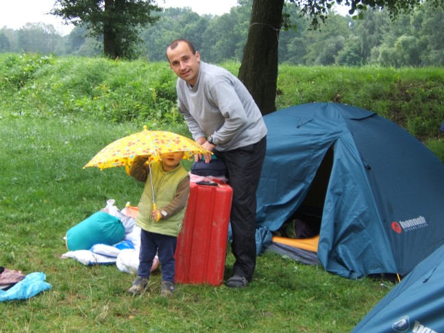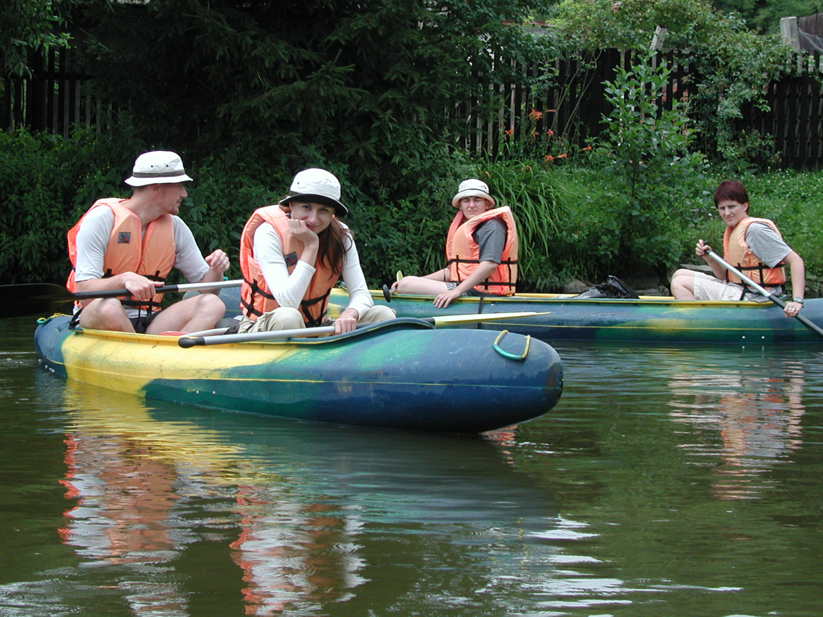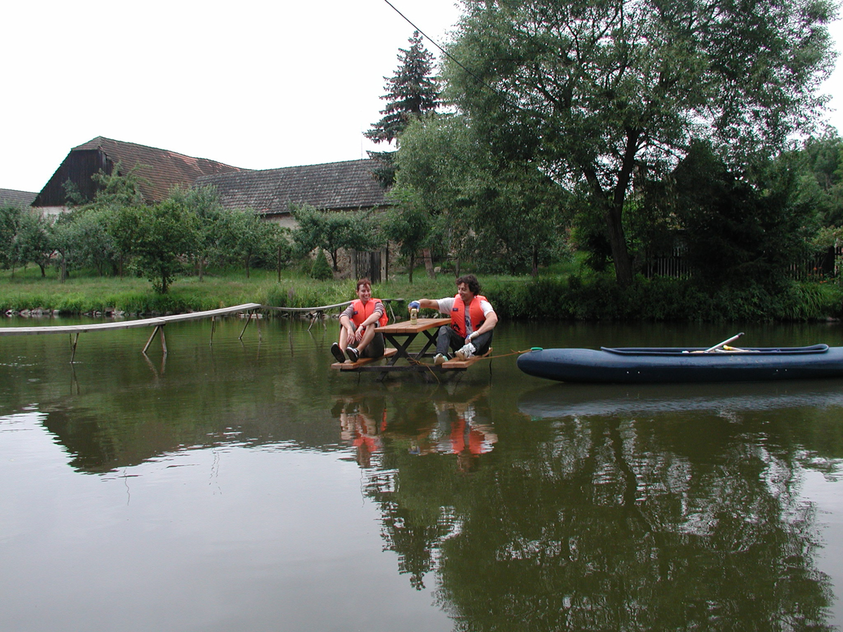 Presnosť je výsada kráľov, nie však bohatierov. Dohodnutý zraz o 17:00 pred Komandovým barákom čiastočne zlyhal. Z neďalekej zastávky včas docupitali prvoúčastnícky Didi a Janka. Ja so Zdenkou sme tam boli tiež. Komando s Alenkou dofičali chvíľu po nás. Čakalo sa na Jarku a Rasťa, ktorí svoju účasť na bohatierskej akcii už niekoľkokrát odložili. Posledný telefonát s nimi vyvrátil všetky pochybnosti. Prvé auto Vydra1 s obsadením (strojvedúci Komando, navigátor Alenka, prísediace Didi a Zdenka) vyráža o 17:45. Druhý prenosový voz Vydra2 (strojvedúci René, navigátor Rasťo, prísediace Janka a Jarka) s menším oneskorením z dôvodu čerpania pohonnej hmoty a nákupu Jarkinho pršiplášťa do prípadnej nepohody. Konečne opúšťame Bratislavu - smer Majdalena v Čechách. Cestou sme sa už nikde nezastavovali, ak neberiem do úvahy malú cikpauzu s močením do rybníka, či blúdenie okolo kruhového objazdu so súsoším kaprov v Třeboni. Už sa začalo stmievať, keď sme prešli celou dlhokánskou Majdalenou, a kemp nikde. Na konci dediny sme sa otočili a opýtali na cestu náhodného pána venčiaceho psa. Do verejného kempu sme napokon trafili. Bolo práve 21:40. Vyhliadli sme miesto na táborenie a začali sa obzerať po Komandovcoch. Keďže mali poriadny náskok, už tam predsa museli byť! Voláme im, a keď zdvihli telefón, práve prichádzali. To nie je možné! Kde boli? Dozvedáme sa, že si dali hodinovú prestávku spojenú s večerou, zatiaľ čo my sme pojedali počas jazdy suché rožky so salámou. Doteraz sme nič nevedeli o treťom prenosovom voze (strojvedúci Tibor s deťmi Terezkou a Vikim, navigátor Yanoo so synom Vikim). O jedenástej večer prekročili hranice tábora. Stany stavali takmer hodinu pri zapnutých reflektoroch auta. Príčinou nebola neschopnosť, ale fakt, že stan bol úplne nový, viackomorový a v zloženom stave ho videli iba raz, aj to na fotografii v katalógu, ktorý však nemali so sebou. V bufete so slovenskou obsluhou, zrejme odniekiaľ z Košíc, sme si dali niečo na zvítanie starých bohatierov a nových ľudí. Pospomínali sme zážitky z akcií, až išlo chvíľami čeľuste rozdrapiť. Medzi rečou padlo aj pár neistých otázok, či niekto z nás našiel alebo videl rieku Lužnici. Zajtra začína splav a niekde sa treba nalodiť, no po rieke ani stopy. Niečo po polnoci zaliezame do stanov a zaspávame.