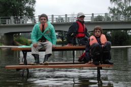 Ešte pár pokynov pre nových o riadení loďky a už sa to začalo. Vitajte na palube potápajúceho sa parníka. Nik sa necvakol, ale pár neriadených otočiek v strede rieky a polámané steblá tráv pri brehoch hovorili za všetko. Lužnice nie je rýchla ani hlboká, zato však tečie hustým porastom a meandrami na každom kroku pripomína jazdu v aquaparku, s imitáciou dažďového pralesu. Pri prvom prenášaní hate Rozvodí sa rozhodujeme, ktorým ramenom pôjdeme. Nové usmernené a vyrovnané rameno má dostatok vody, je však menej záživné. Staré koryto naopak vedie divočinou národnej prírodnej rezervácie, no hrozí uviaznutie na plytčine. Keď bude pršať, vody bude dosť, a na bohatierke vždy prší. Volíme starú cestu. Nádhera!