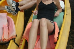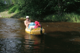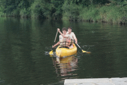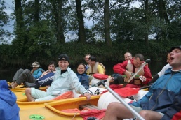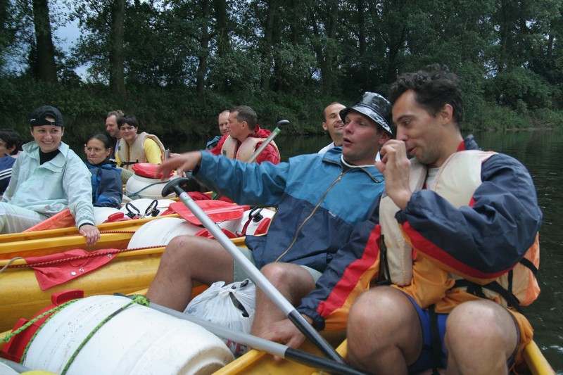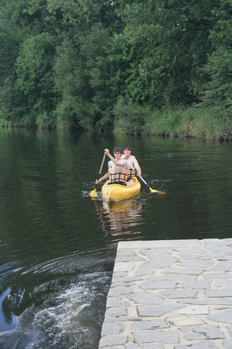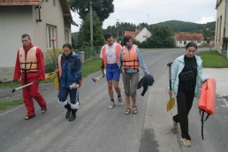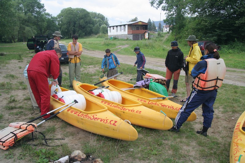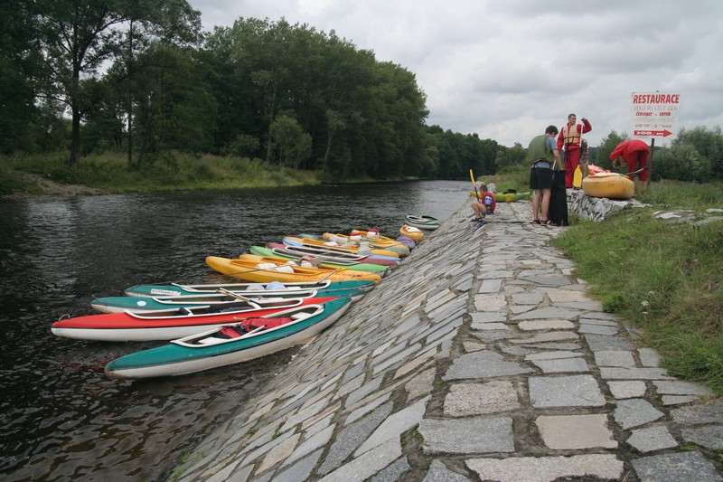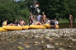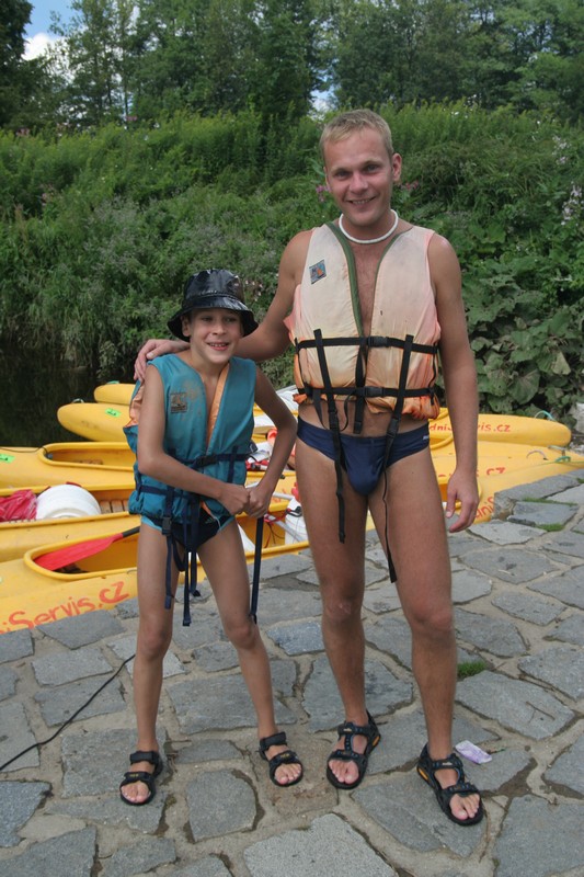 A bolo tu ráno, slniečko nikde, ale nám to vôbec neprekážalo. Tešili sme sa, že nám dovezú lodičky. Lode dorazili, barely, vesty, proste všetko. Raňajky pri aute - chlieb, paštéta, paprika, tým sme sa snažili zasýtiť naše brušká. A poniektorým sa ušiel Elkin čajík. A aby som nezabudla, dorazil k nám ďalší člen posádky - Anténka. Tak a teraz už nám nič nebránilo, aby sme pospúšťali lode do rieky a nasadli ako správni bohatieri. Vyrážali sme z obce Sušice. Hneď na začiatku bolo aj pár akrobatických otočiek, alebo ako to vlastne nazvať, no napriek tomu to chalanom Petríkovi a Potkanovi išlo na prvýkrát výborne. Emil a ja sme zatiaľ nenabrali tú odvahu a priznám sa a verím, že to hovorím aj za Emila, trošku sme sa jeden druhého báli, čo vlastne môžeme jeden od druhého v člne čakať, a tak Zdenka a Renčo si nás zobrali pod svoje krídla. Júj, a aby som nezabudla, nechýbali nám fľašky s pohonnými hmotami. Splavovalo sa nám v pohode, pár perejí, viac prenášačiek – no tie nás na druhej strane poriadne posilňovali. A čo je pravda, nevedeli sme sa dočkať českých krčmičiek. A prišiel vytúžený obed (cca o 15-tej). Zakotvili sme a vystúpili vo Veľkých Hydčiciach. Boli sme tak unavení, niektorí premočení a hlavne všetci hladní. Nečudo, že sme sa posilňovali skoro 2 hodiny. A znovu sme boli v člnkoch, čakal nás Pracheňský jez a o pár metrov táborisko. V sobotu podvečer sme dorazili konečne do kempu a zakotvili sme v Horaždoviciach. Posádky boli také vyčerpané z celodenného splavovania, že sme zabudli na posádku Jančiho a Tibora, ktorí si to splavili o „pár“ metrov nižšie. Radšej nebudem ani písať, ako to bola pre nich hračka pádlovať proti prúdu. Pršalo, dážď veľmi neustupoval, no chvalabohu, že naše stany stáli, okrem posádok, ktoré som v predchádzajúcej vete spomínala. Nik by nepovedal, že v ten večer budeme mať toľko šťastia. Dvesto metrov od našich príbytkov stál Aquapark, ktorý sme si poriadne vychutnali. Malý tobogan, bazén, fontánka a perličková kúpeľ, z ktorej sme mali poriadne vyštípané oči, nám prišli tak vhod ako nič predtým. Fakt neskutočné. Bolo to skvelé, inak naplno sme využili služby, ktoré nám Aquapark ponúkal. Dokonca sme neodolali ani reštaurácii (ak to tak mám nazvať). Vhod padli teplé polievočky, palacinky, cestoviny, šalát, hlavne Tiborovi, ktorý dojedal šalátové listy z Komandovej misky. Opozdilci, ktorí sa do bazénu dostali trošku neskôr, skoro ostali hladní, no čašníčku prehovoril šarm Jančiho a Tibora (nechcem lichotiť, ale naozaj sa im nedalo odolať), a tak si poniektorí zaslúžili aj pizzu. No a keďže ešte nesvitalo, tak sme si povedali, že sa ešte pred spaním vyberieme na prechádzku do mesta. Objavili sme malú pivničnú vinárničku. Dali sme si svařák s limetkou, vínko, ktoré si naši bohatieri (teda skôr Anténka) vybrali z pivnice vinárničky, až nakoniec sme sa vrátili do stanov.