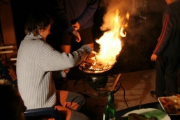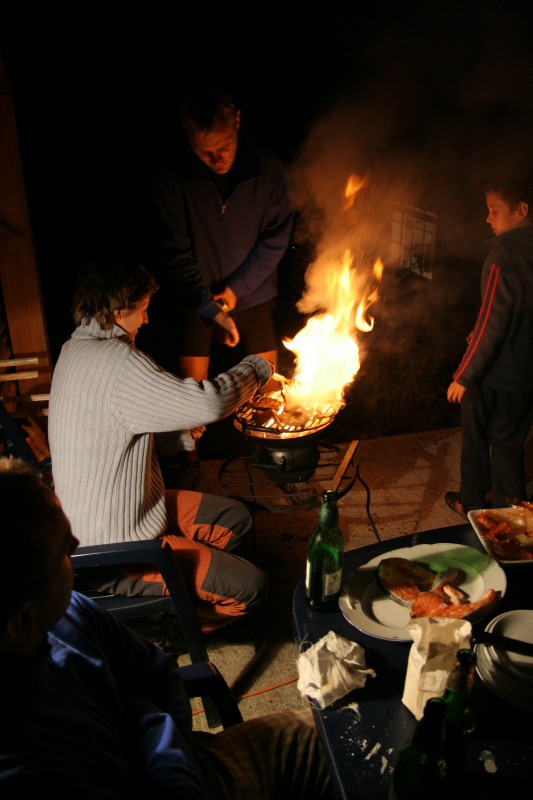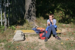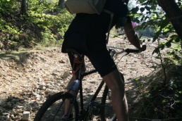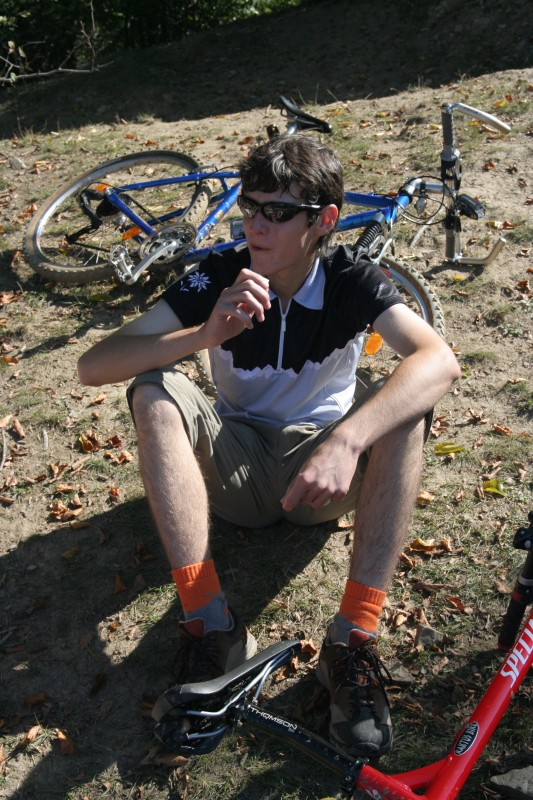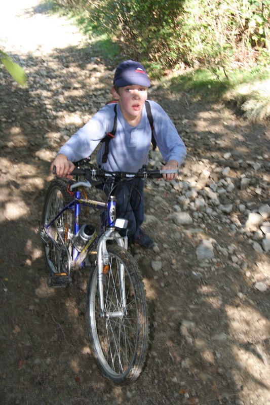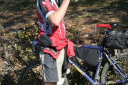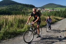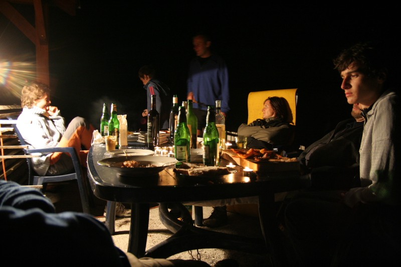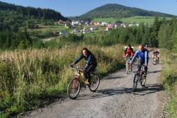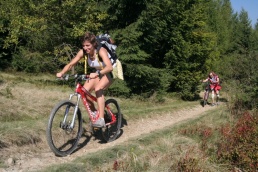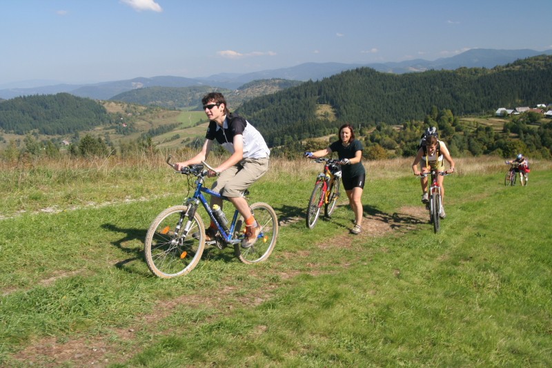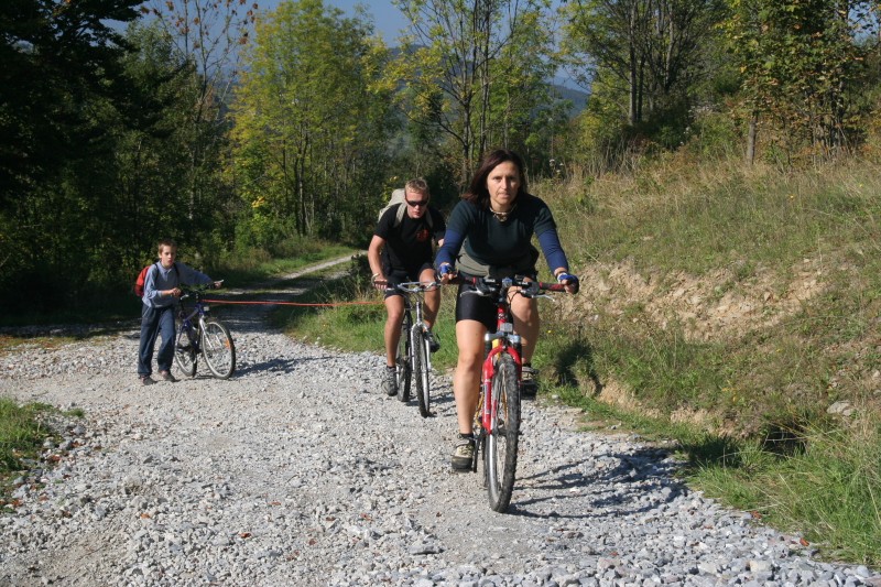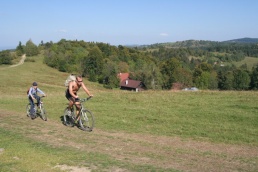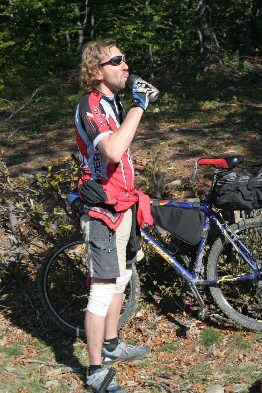 Ráno prichystal Tibor vynikajúcu bryndzovú nátierku s čerstvou cibuľkou a Zdenka čaj. Spoločné raňajky si každý dosýta vychutnal, veď nás čakala neznáma trasa a podľa správ z kuloárov sa na nej nepredpokladali žiadne občerstvovacie chaty. Cyklofľaše s iontovými práškami zaplnila po okraj studená voda. Aj lepenie defektu, skladanie bicykla a preskakovanie švihadla patrilo k našej príprave. Prvý downhill od chaty po vertikále sme zvládli. Po ceste sme sa zastavili v najbližších potravinách, kde si každý doplnil zásoby na deň, niektorí aj na dva. Špecialitou boli Anténkine kukuričné chrumky v rodinnom balení, trčiace z ruksaku provianťáka Petríka. Za dedinou začalo prvé stúpanie, a tak si Tibor priviazal Vikiho bicykel gumeným lanom o svoj. Za necelú hodinku sme odstavili tátoše na čistinke s lavičkami. Pitný režim treba dodržiavať za každého počasia. Lesná cestička nás ďalej doviedla na neznačené rázcestie. Už tu sa rýchlejší členovia oddelili od skupiny a nereagovali na výzvu vrátiť sa, pretože boli tak ďaleko, že ju ani nemohli začuť. A tak boli privolaní mobilným telefónom. Terén trasy sa občas zavlnil a veru bolo treba niektoré úseky zosadnúť a poctivo tlačiť. Ďalšia pauza bola na pravé poludnie. Slnko ukázalo svoju letnú tvár. Voda sa rýchlo míňala a čoskoro nebolo čo piť. Situáciu zachraňovala Anténka, ktorá sa s vervou vrhla do hlbokej studne s nízkou hladinou vody, aby nám naplnila fľaše. Ostatní sme zatiaľ ležali v tráve, strážili bicykle a dojedali posledné kúsky kukuričných chrumiek. Čas pokročil a bolo sa treba pobrať. Cesta viedla zarasteným hrebeňom Javorníkov. Šípky na kríkoch dozrievali a lístie žiarilo všetkými farbami. Nezvyknuté zadky trocha omínali, ale sedadlá boli neúprosné. Po náročnom a zároveň poslednom stúpaní sme si na hrebeni spravili pauzu. O 17:00 už slnko čiastočne zapadalo a aj sa trocha zozimilo. V okolí bolo plno dozretých černíc. Zber lesných plodov, spojený s ich okamžitou konzumáciou, patril medzi najkrajšie chvíle dnešnej cyklistiky. Vojťas, v snahe vyťažiť z dňa maximum, sa pobral nabehať ďalšie kilometre po hrebeni, ostatní sme si vychutnali rýchly a pomerne strmý zjazd. Zostup viedol lúkami pomedzi osamelé domčeky a asfaltkou skončil v dedine. Naše spotené a unavené telá rozrážali stojatý studený vzduch v doline. Správne vychladení sme prišli do prvej krčmy a dali správne vychladené pivá, no niektorí rovno horúci čaj s rumom. Nikomu sa z tepla nechcelo, no keďže nás Vojťas nedobehol, pobrali sme sa ku chate. Vertikálna cesta nás aj teraz poriadne zohriala. Keď sme dorazili do cieľa, bolo presne 19:00 hodín. Takmer nikto nezvládol sprchu, a rovno sme prešli ku grilovaniu slaninky, kuracích krídiel a pre labužníkov bol prichystaný losos. Romantickú atmosféru dotvárali horiace sviečky na stole. Volal Vojťas – aby niekto pre neho došiel autom, pretože dostal defekt a už sa mu to v tme a zime nechcelo lepiť. Grilovačka chvíľami pripomínala skôr flambovanie megaplameňom, no losos bol skvelý. Už o pol desiatej bol Vojťas tuhý, postupne sa vytrácali aj ostatní, unavení celodenným šliapaním. Presunuli sme sa k ohňu, kde sme strávili, pod oblohou plnou hviezd, večer plný nezodpovedaných filozofických otázok a niekedy aj odpovedí.