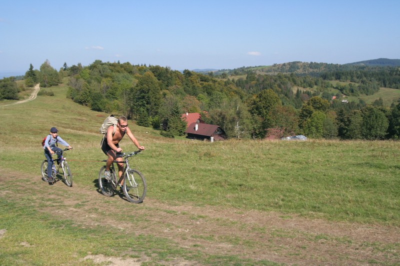 Vláda septembra už bola na spadnutie, no napriek tomu naďalej vládlo príjemné letné počasie. Nebolo rozumné dlhšie váhať nad tým, či ísť alebo nie na bohatiersku cyklistiku. Tiborov opis príjazdovej cesty do Zákopčia u Gáborov neďaleko Čadce sa vo svojej podstate nápadne podobal na Emilov opis kolaudačnej cesty do Alžbetinho dvora, časti Miloslavov. Správny bohatier sa však vždy správne zorientuje v ľubovolnom teréne, hoci aj podľa mapy Slovenského raja. V piatok sme vyrazili z Bratislavy pomerne neskoro. Vojťas opäť raz zabudol, že má na streche auta nosič s bicyklom, a tak si to veselo našinul do garáže. Sedlovku frézovali v servise pár minút pred záverečnou. Po ceste do Žiliny sme omylom zabočili z diaľnice na Nitru, a tak si pozreli nočnú Kremnicu a Štubňu, no a cez Martin veselo do Čadce. Po ceste nám prezváňal Tibor aj Yanoo z miesta činu. Vraj je tam ohromná tma a od parkoviska je to po vertikále, takže po nás radšej prídu autom a zoberú batožinu, ak tam vôbec trafíme. O polnoci sme našli Yanoove auto zaparkované za drevenou garážou. Tma bola skutočne tmou a na oblohe plno hviezd. Prezvonili sme ich, že už sme dorazili. Kým sme dávali bicykle dole zo strechy, kdesi vysoko v hore preťali tmu dva približujúce sa kužele svetiel. Z auta povyskakovali Tibor, Yanoo, Anténka, Petrík a malý Viki. Zvítali sme sa, pripili sme si, pobrali nám batožinu, naskákali do auta a nechali nás šliapať tú vertikálu. Hore, pod dreveným prístreškom – na mieste bývalej stodoly, sme do seba hodili pár krajčekov chleba a nato zaliezli do perín. Všadeprítomná absolútna tma a hrobové ticho na človeka z mesta pôsobili takmer deprimujúco. Už aby bolo ráno.