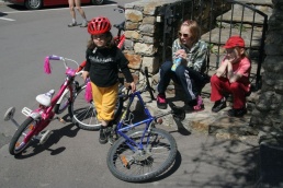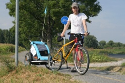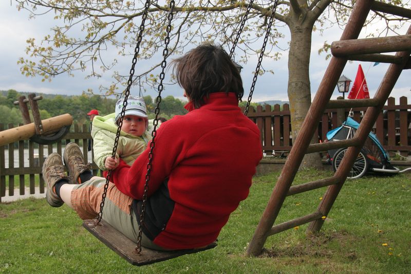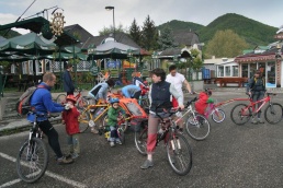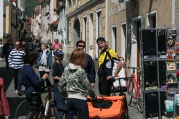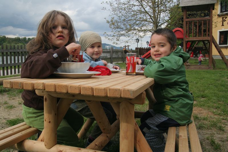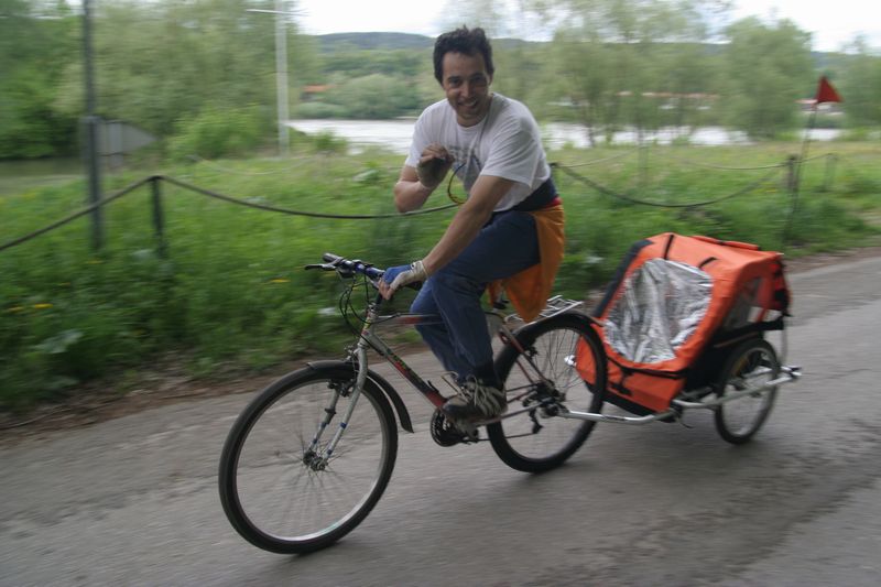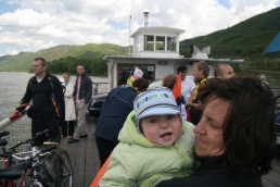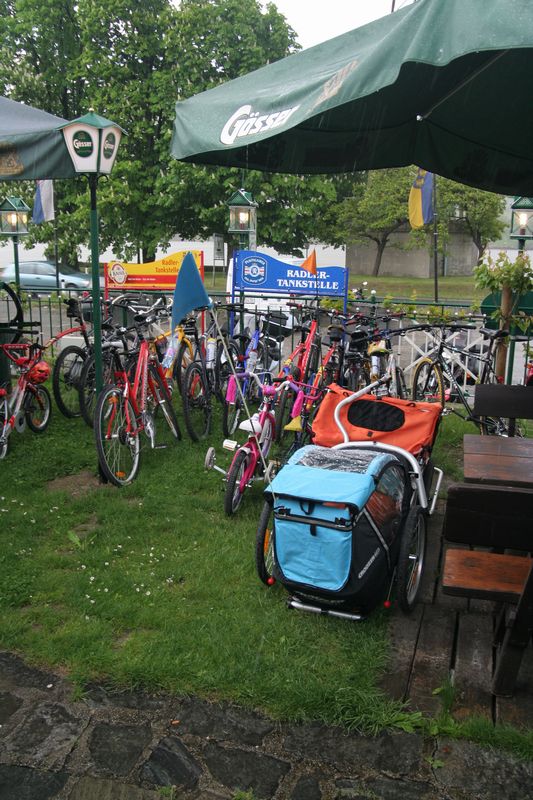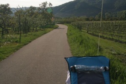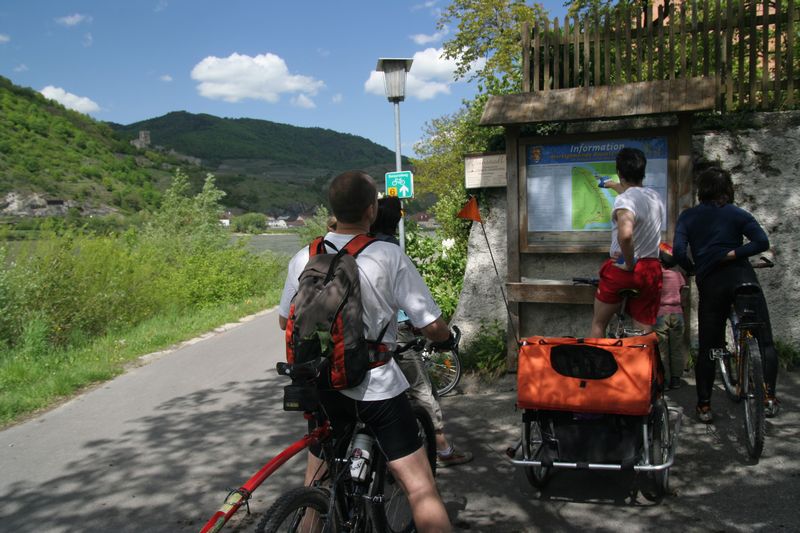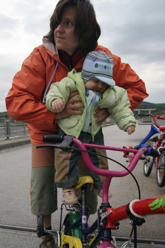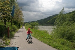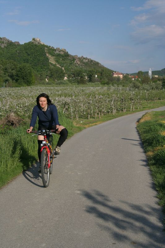 V Melku sme to nateraz zabalili. A to doslovne. Po raňajkách sme naložili komplet batožinu aj s bicyklami a deťmi do áut a presunuli sa do Kremsu. Tentoraz sme okrem bicyklov nič nevybaľovali, takže naše tátoše boli osedlané behom chvíľky a už o pol dvanástej zanechávali prvé virtuálne stopy v asfalte, ohľaduplne nanesenom do kraja kvalitných viníc a rozkvitnutých ovocných sadov. Mestečko Dürnstein vítalo pustovníkov otvorenými pivničkami a obchodíkmi so suvenírami. Neodolali sme a zastavili sa hneď pri prvej pivničke. Správne vychladené zlatisté vínko, v tenkostenných pohárikoch na vysokej stopke, prepúšťalo slnečné lúče skrz seba a na jemných bublinkových vláskoch ich rozptyľovalo do okolia. To sa nedá nechľastať. Posnorili sme úzkymi uličkami, nedočkavé detváky sa vymočili podľa potreby kde sa len dalo, a z vysunutých hradieb na opačnom konci mesta sme pozreli meandre Dunaja. Po vínku poriadne vytrávilo a tak najbližší cieľ dostával jasné kontúry. Otvorená reštaurácia na ľavom brehu, s hojdačkami pre najmenších, bola naplnená až po okraj, no veľa bohatierov sa všade dobre zmestí. Po zaprataní ženských brušiek a mužských kotlíkov dobrotami pokračovala cesta ku kompe v Spitze, kde sme včera stratili Emu, no tentoraz sme si všetci dali poriadneho majzla. O štvrtej sme sa prepravili na pravý breh a pokračovali späť do Kremsu. Cesta viedla vinicami a okolo detských ihrísk. Bohatieri jedno z nich takmer zlikvidovali, keď ho poctili svojou návštevou. Posledné kilometre putovania sme zápasili so silnejúcim protivetrom, ktorý spôsobil oddialenie príchodu k autám. O siedmej večer sme naložili bicykle a vydali sa každý svojou cestou.