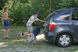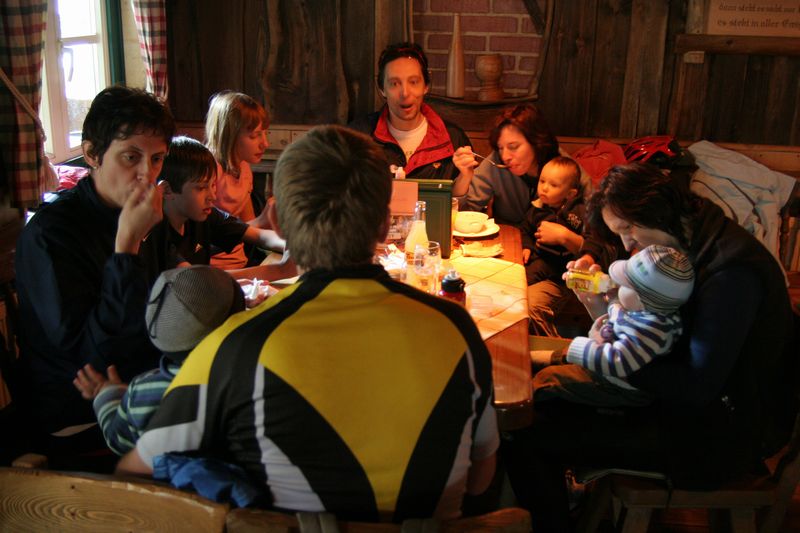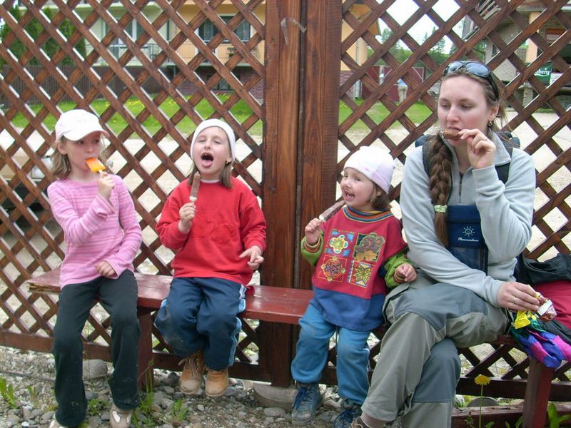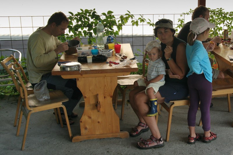 To bolo ráno. Všetci sme sa streli pri spoločných raňajkách a predebatovali včerajšok a hlavne dnešok. Počasie trocha premenlivé, no prevažne jasno, čiže ideálne na splav Dunajca na pltiach. Nik nebol proti, tak sme sa najedli, zbalili a presunuli sa do „Hájenky“. Ubytovali sme sa v celej horárni. V každej izbe boli nejakí bohatieri, strácal sa prehľad o tom, kto kde býva, čomu výdatne napomohla aj trojposchodová konštrukcia horárne. Snáď len pivničné priestory neboli zabrané. Okolo obeda sme zarezervovali dve plte a po miernom čakaní aj vyrazili na vodu. Pltníci spustili svoje nacvičené poviedky a naše deti zase tie svoje. Malému Viktorovi sa rezali zúbky, a to s dosť silným zvukovým efektom. Malá Janka sa nedala presvedčiť, že Dunajec nie je krytý bazén, v ktorom sa môže veselo vykúpať, veľký Richard močil z plte do vody, malý Riško sa nevyjadroval k ničomu a napokon prespal polovicu cesty. Väčšie slečny ako Ninka, Elka, Dominika, Magdalénka, a chlapák Tonko sekali dobrotu. No a do toho sa ochladilo a začalo pršať. Na druhej plti spočinula rodinná posádka od Tibora, Anténky, Yanooa a Jančiho. V cieli sme sa počkali a v chate Pieniny dali spoločný obed. Rozhodnutie posilniť sa bolo správne, pretože cesta nazad popri Dunajci sa zdala byť nekonečnou. Anténka zohrala veľmi dôležitú úlohu pri motivácií detí nevzdať ukrutný pochod a dôjsť až do cieľa. Niektorí si pomohli požičaním bicyklov s detskými sedačkami. Nevyrovnaná fyzická kondícia bohatierov ich roztrúsila po celej Jantárovej ceste a poslední prišli na večeru ku Petríkovi s hodinovým meškaním. Zdatnejší Vojťas, medzi prvými v cieli, stihol ešte osedlať bicykle svojimi deťmi Elkou, a sedačku Tonkom, a vyraziť späť k chate Pieniny. Jantárová cesta nepatrí medzi najrovnejšie, a tak z početných nerovností terénu a hojdania v sedačke dostal Tonko morskú chorobu. Do záchrannej akcie povolal mňa, a to som už sedel pri stole a zbožne čakal na tanier s večerou. Všetci traja boli zachránení a odvezení priamo do reštaurácie. Po večeri a úspešnom uložení drobizgu do postieľok sa starí bohatieri zišli na jednej z chodieb, aby dopili načaté a načali nedopité.