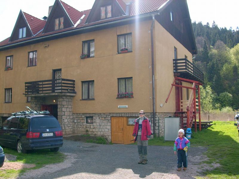 Paradoxom niektorých bohatiersky organizovaných akcií je niekedy organizácia samotná. Veď aj ubytovanie v Červenom Kláštore, neďaleko meandrov spenenej hladiny Dunajca, vybavovala Lenka, bývajúca až v stovežatej Prahe, a to aj napriek tomu, že pár bohatierov zapustilo svoje korienky v neďalekých lesoch východného Slovenska. Miesto aj čas bohatierskeho zrazu bol o 15:00 v goralskej reštaurácii u Petríka. Ten nám prenajal na pár nocí aj horáreň „Hájenka“, prapodivne umiestnenú priamo v obecnej zástavbe, hneď vedľa hlavnej cesty. Na prvú noc však kapacitne nestačila uspokojiť všetky naše potreby, preto časť mobilnejších bohatierov sa presunula na opačný koniec obce, do strediska Dunajec. Na naše pomery výborné ubytovanie s parkovaním rovno pred chatkou, bunkou pre štyroch ľudí, s vlastným weckom a sprchou. Pred chatkami detské ihrisko s kolotočom, teplá strava a nočný bar s peknou barmankou. Všetky služby sme samozrejme využili a v tomto poradí. Ku večeru nás došli pozrieť bohatieri z „Hájenky“. Treba podotknúť, že nám ten komfort čiastočne závideli. Tibor svojim skleným vybavením, dominantným demižónom plným robustného vína a novými pohárikmi z českého kryštálu, mnohých prekvapil. Keď chľastať, tak decentne. V reštauráciách nemajú radi konzumáciu prineseného proviantu, preto sme sa radšej aj s demižónom presunuli na chodbu. Po dopití a prvej vlne odlivu hlavne dorastu a bohatierov z „Hájenky“ sme zaujali miesta v bare. Komando, Tibor s Jankou a ich malým dvojročným Maxom, Zdenka a ja – to bola polnočná zostava. Keď už bol Maxo konečne aspoň čiastočne unavený, rozhodli sa Tibor a Janka, že už nás opustia a pešo prejdú do horárne. Tam ich ale čakal Yanoo, takže zvyšok noci až do rána prekecali. Tibor si pri odchode zabudol na barovom stole svoj foťák, čoho sme s Komandom patrične zneužili a hromadu fotiek z baru aj s barmankou nafotili. Doteraz som z nich nevidel ani jednu. Zrejme neprešli jeho cenzúrou.