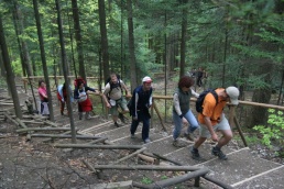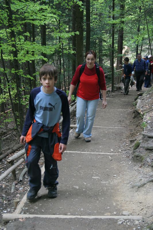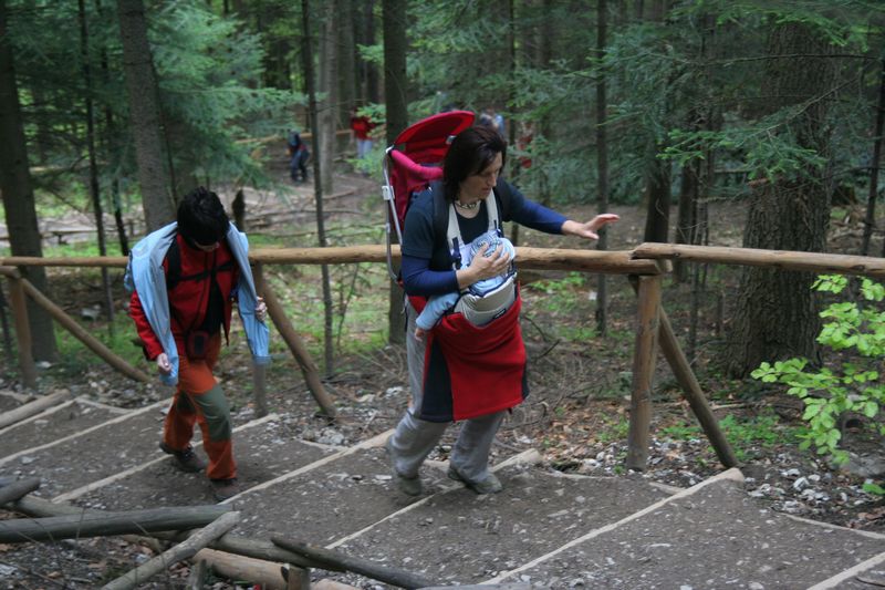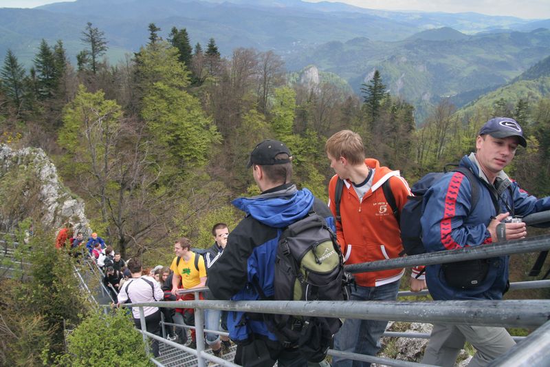 Ráno to vyzeralo na pekný slnečný deň. K Didi dnes dorazila choroba, čo ju prenasledovala už pár dní, preto celý deň preležala na izbe. Ostatní sme dorazili k raňajkám, napráskali si vytrávené brušká a vyrazili do protiľahlého skalného masívu prebádať povestné Tri koruny. Ešte pred nástupom pod masívom sme sa držali pokope, no jemnú rovinku vystriedalo prudké stúpanie s množstvom schodov. S nadmorskou výškou klesala teplota a stúpal tep. Poliaci dokážu predať hocičo, a inak tomu nebolo ani na vrchole, ktorý obohnali plotom a na vstup postavili strážnikov. Kto chcel až na rozhľadňu, postavil sa do radu platiacich divákov, vošiel do vymedzeného priestoru a jednou polovicou chodníka, usmerňovaný značkami s prikázaným a zakázaným smerom jazdy, nastúpal spolu s davom až na samý vrchol. Na ploche asi štyroch metrov štvorcových sa k sebe, ale aj od seba, tisla asi dvadsiatka cestujúcich, a nebyť chýbajúcich madiel, človek by sa neubránil dojmu, že stojí v preplnenom autobuse, smerujúcom na vysokoškolský internát po záverečnej skúške. O výhľade ani nehovoriac. Pozerať sa mohli len priebojní alebo s vyšším vzrastom, ľudia s menej kvalitným genofondom ostali pripučení v strede davu. Fronta čakajúcich po chvíli začala pokrikovať na plošine stojacich ľudí, že aj oni si zaplatili a aj oni chcú vidieť, tak aby tam zbytočne či dlho nepostávali. Odišli sme z plošiny. Výhľad stál skutočne za to. Červený Kláštor na dlani spolu s „Hájenkou“ a reštauráciou u Petríka, Dunajcom a drobnými plťkami sotva viditeľnými voľným okom. Zostup sme absolvovali druhou cestou okolo ruín hradu. Dochádzala už voda a sily. Po návrate do horárne a večeri pár bohatierov vyrazilo ešte na okružnú slovensko- poľsko-slovenskú cyklistiku po pohraničí. Deti už nebolo treba dlho prehovárať k spánku, no horšie bolo, že ani dospelých. A tak bolo možné stretnúť po chate blúdiacich bohatierov, hľadajúcich niekoho do partie, no tejto noci sa po nich zľahla zem.