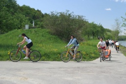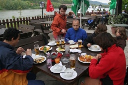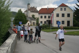 Znej pieseň slávna vznešená, chváľ prácu ktorá jediná, vie ľudstvo k blahu viesť. Veď všetko čo tu človek má, len práca dáva statočná! Buď práci česť! Buď práci česť! Áno, práci česť a rukám pokoj. Takto sme sa na nadchádzajúce dni voľna pozreli a naplánovali si cyklistiku v okolí rakúskeho mestečka Krems an der Donau a Melk v podunajskej oblasti. Vzhľadom na vzdialenosť od Bratislavy, cca. 170 km po diaľnici, bol presun realizovaný autami. Okolo jednej poobede sme sa 4ks Vojťasovci, 4ks Helkina sestra s rodinou, 3ks Komandovci, 2ks Antenka s Romi, no a 3ks ja, Zdenka a Riško vyzrážali pred mládežníckym hotelom Jugendherberge v Melku. Vybalenie a ubytovanie netrvalo dlho. Pri toľkých deťoch sme to zvládli v rekordne krátkom čase a už o 15:40 nasadáme na bicykle. Strelku internej navigácie prevzal žalúdok a o 20 minút sme zaparkovali v rohovej reštaurácii s výhľadom na more, resp. Dunaj a hojdačkami pre náš drobizg. Obedo- večera, čo iné ako každý podľa vlastného výberu, no doporučujem Viennerschnitzel mit Himmel, v simultánnom preklade viedenský rezeň s oblohou. Decká sa prehrali na hojdačkách a v drevenom domčeku, kým dospelí popíjali vychladené pivo. Veď nič iné sa v tej kose ani robiť nedalo. Na zahriatie sme si dali cyklistiku v protivetre a naproti blížiacej sa búrke. Cieľ bol jasný – plavebná komora na Dunaji. Mali sme šťastie, keď sme vystihli moment vplávania lode a zatopenia komory. Niečo po 18:00 sme odišli do nášho bejskempu. O deviatej večer, v spoločenskej miestnosti, sme sa ledva zmohli na pár dúškov kvalitného vínka. Oči chytala únava, viečka dreli nasucho a chceli spať. Deti, snáď z tých výparov, chytili druhý dych a rozbesneli sa, akoby celý deň strávili ničnerobením.