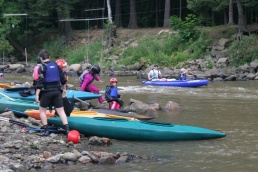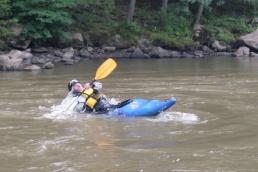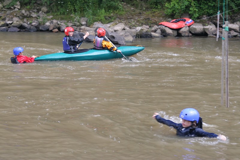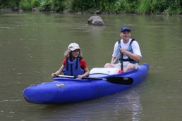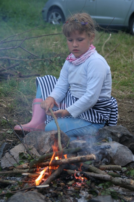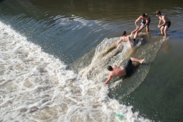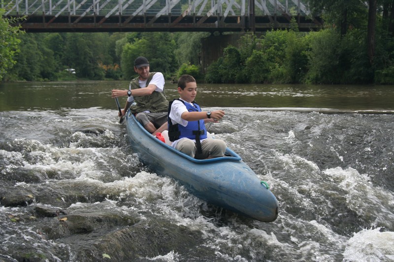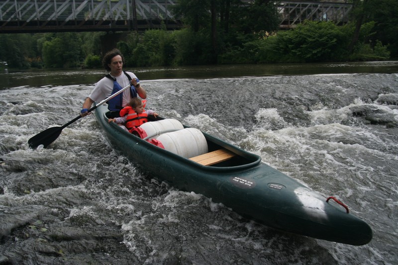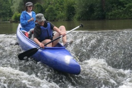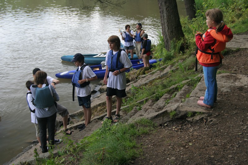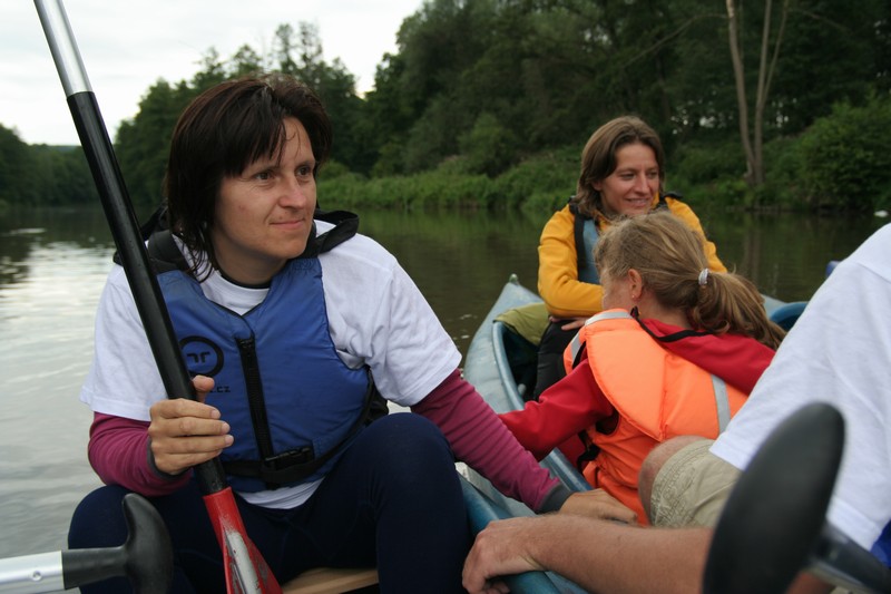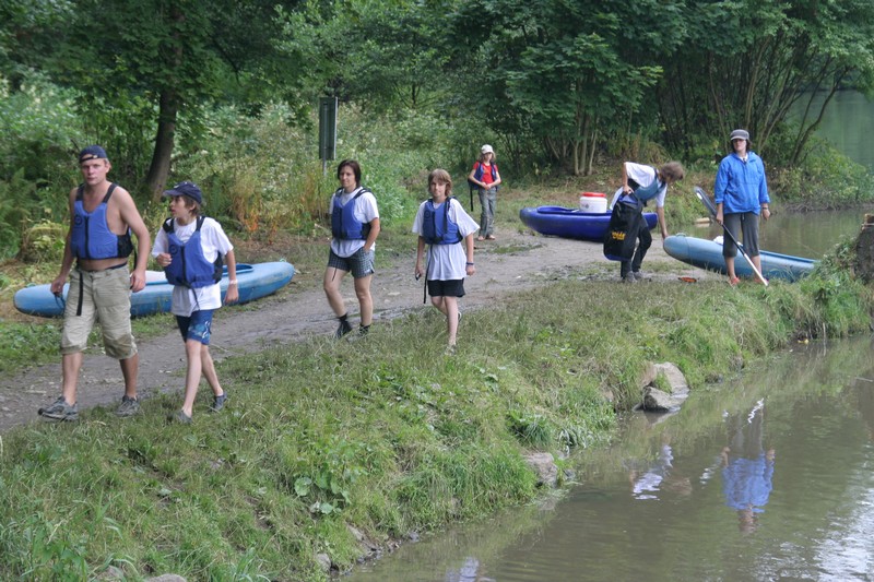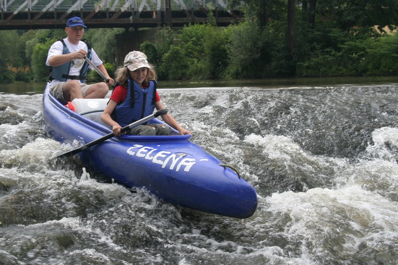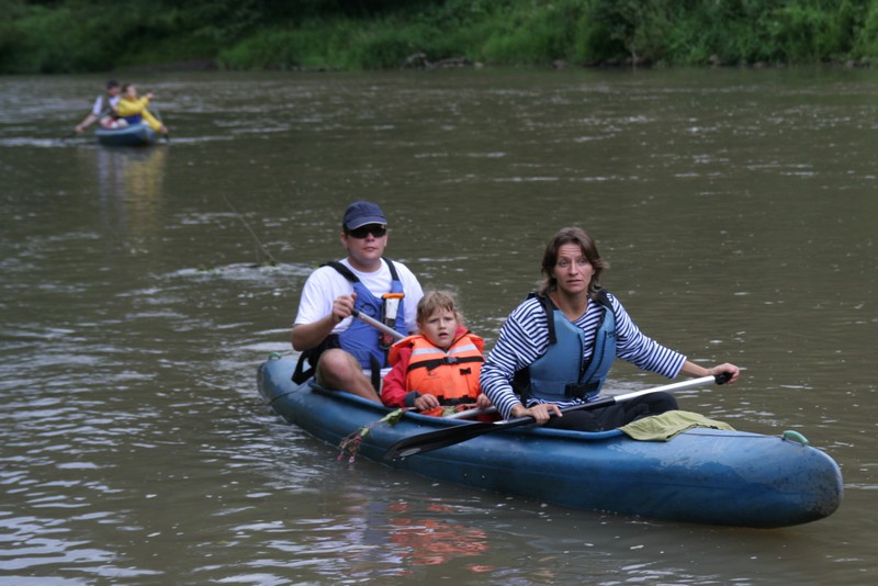 Včerajšia etapa dala skutočne zabrať, o čom svedčilo úmerne neskoré vstávanie. S balením tábora sme začali o pol jedenástej, a už na pravé poludnie oblizla hladinu prvá kánojka. Úsek viedol pokojným korytom rieky s jednou športovou perejou, no v tom čase s nižším stupňom vody. Dali sme si pauzu na kamenistom výbežku a nechali sa baviť inštruktorom detských kajakárov. Ten najprv na požiadanie, no neskôr celkom sám, z vlastnej iniciatívy, ako keď páv roztiahne brka aby samičky zaujal, robil eskimácke otočky jednu za druhou, až mu to zaiste muselo vypláchnuť usadené hlieny v dutinách nosných aj čelných. O pol štvrtej sme zastavili v Dubine na obedné občerstvenie v Hospodě u Dvořáků. Pohľad na sympatickú blonďatú roznášačku piva orosil nejeden... pohár so svetlým Gambáčom a ovocné knedlíky tomu dodali exotickú príchuť. O pol siedmej sme zakotvili pred, na prvý pohľad, nesplavným a nebezpečným jezom. Drevený kríž so zašlou fotografiou ženy poriadne zamrazil. O odľahčenie situácie sa postarali miestni borci, ktorí sa bez jediného zaváhania vrhali hlava-nehlava do vodného valca či laškovali na úvrati hrádze. Keď bolo jasné, že sú to čistí blázni, prišiel ich kráľ. Preliezol oplotenie stavadla, vyštveral sa na schátralú budovu vedľa stavadla a z výšky dobrých 10 metrov skákal do temnej vody tesne za mohutné kovové dvere hate. Vyzeralo to, že sledovaním skokov strávime zvyšok večera, no zarazil to Tibor svojim výberom akostného, odrodového i výberového vína, rozlievaného do českého skla. Oheň, pôvodne zápalkami a poctivým papierom neúspešne zapaľovaný, a až pomocou Marekovho mládežníckeho inovatívneho postupu dezodorantom zapálený, plápolal, až sa od neho zore na oblohe červenali. Pol desiatej bol ten pravý čas na opekanie a psychickú podporu miestneho rybára.