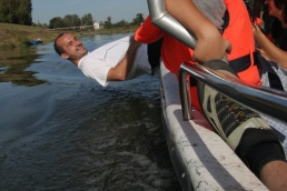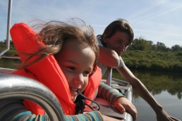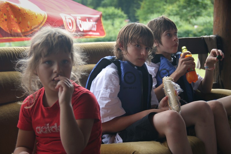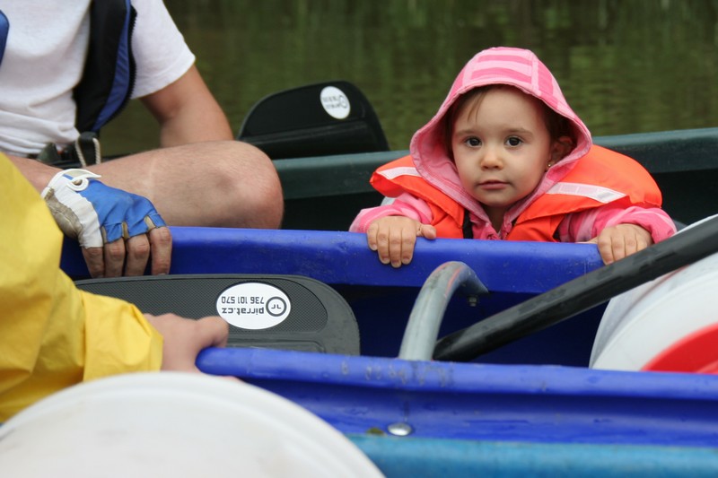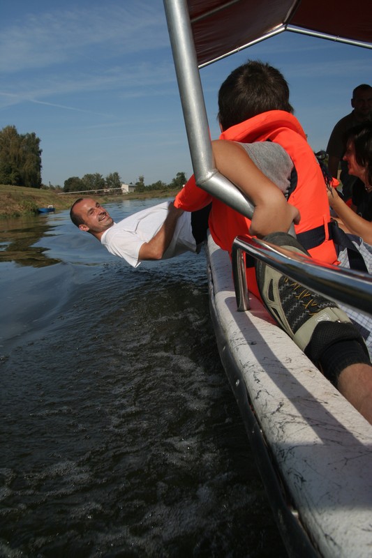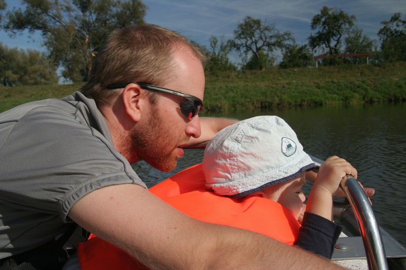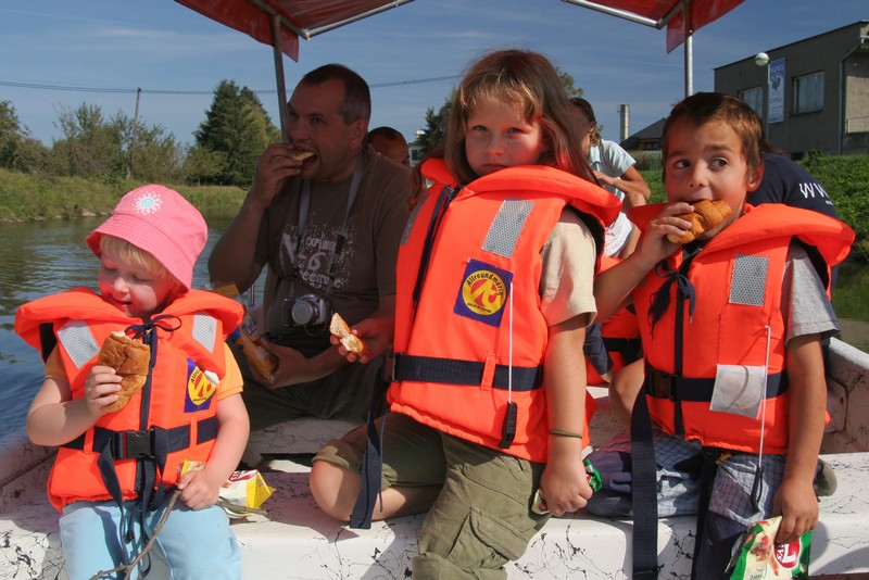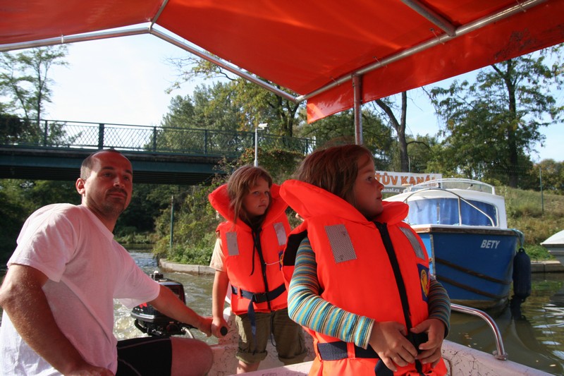 Stretávka sa natiahla do druhej rannej hodiny. Rezol som dva redbully, dve kávy a už o pol piatej som bol späť v chatke - vyzimený, nevyspatý, vybudený a tesne pred infarktom. Však kým by vstali, nejako by som to doležal. Už o pol ôsmej ma zobudil Riško. Ráno sa dozvedám, ako včera ostatní, dobití a zničení došli. Deti vyčerpanosťou padali do kolien a tak im zaspávanie nerobilo žiaden problém. S raňajkami sme sa príliš neponáhľali. Kávička, čajíky, chlebíky – skrátka pohoda. Prvé stopy v cestnom prachu sme spravili až o 10:30. Neponáhľali sme sa. Mali sme pred sebou krátky presun a plavbu na motorovom člne. Ešte jeden most s odvodňovacím kanálom a boli sme tam. Malinký osobný pristav, respektíve zátoka, dala priestor na krátke zaučenie ovládania člna. Inštruktáž dostal Vojťas, a ten sa s ňou počas jazdy rozdelil s dospelákmi aj odvážnejšími deckami. Naskladali sme sa do bárky, zoradení podľa váhových kategórií a vyrazili na cestu. Hneď za zátokou bola prvá plavebná komora, ktorej napĺňanie minútu po minúte ukrajovalo z požičovného času. Nasledoval dlhý bezkomorový úsek, na ktorom kormidlo prevzal a vyskúšal každý zdatnejší bohatier. Doplavili sme sa k druhej komore. Bolo nad slnko jasné, že cez ňu a späť sa za dve hodiny nedostane a nastal čas návratu. Stihli sme to LTT - len tak, tak. Po vylodení Vargovci odišli autom, ostatní sme sa tou istou cestou vrátili ku chatkám, už ráno uprataných a pripravených na odubytovanie. Kolesové tátoše putovali na strešný nosič, popruhy zafixovali pohyblivé časti a my navolili smer reštaurácia, no po nej už naozaj smer domov.