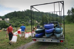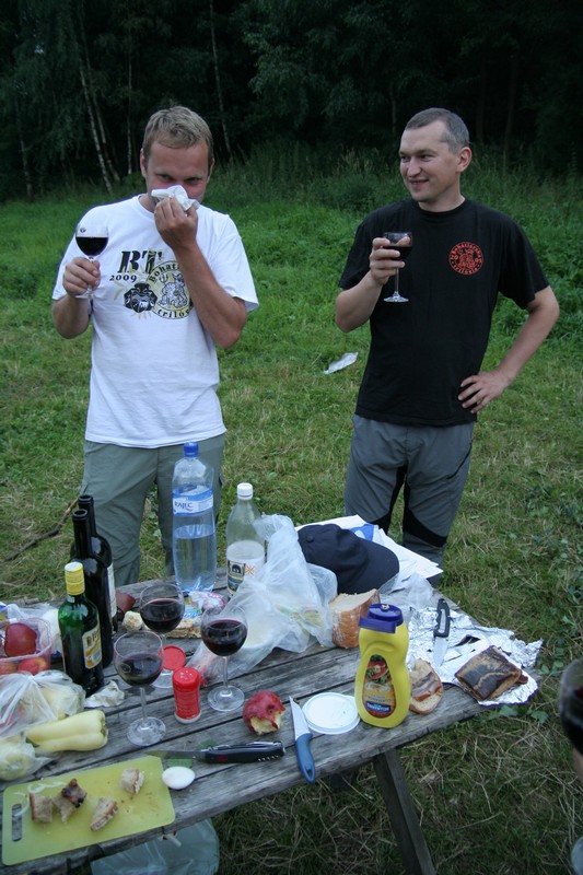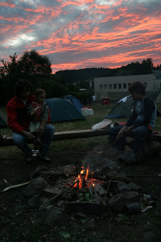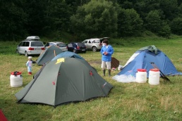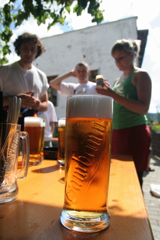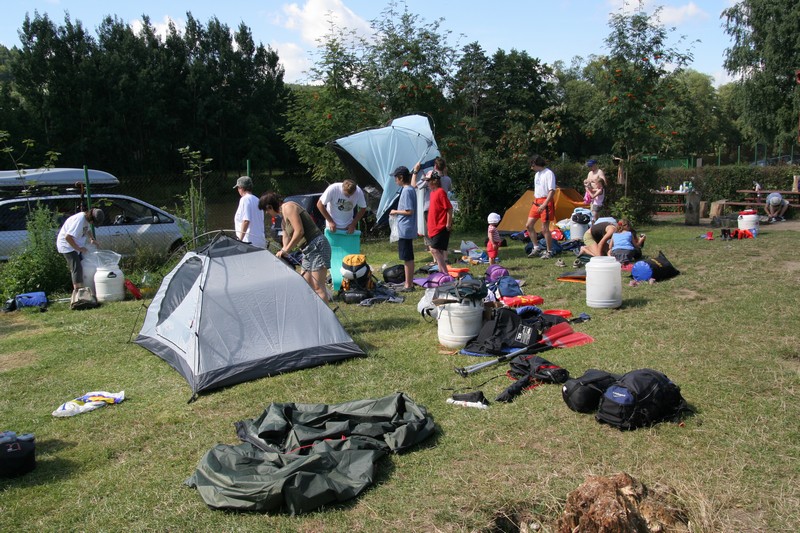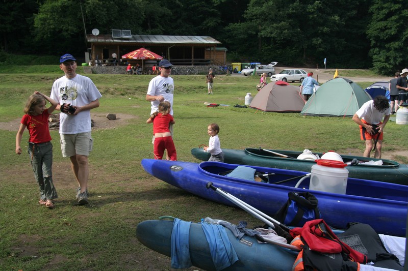 Prvý plánovaný termín nám nie celkom vyšiel. Akurát sme sa trafili do národného sviatku bratov Čechov, ktorí všetci evidentne vyrazili na vodu a nám bohatierom, okrem deravých kánoí, nenechali ani jednu funkčnú Vydru. Určenie náhradného termínu znamenal ďalšiu šialenú mailovú debatu, vyjednávanie, hádanie a udobrovanie. Rozhodnutie padlo na splav rieky Ohře, neštandardne od nedele do utorka. Sobota bola vyhradená na cestovanie do 450 km vzdialených Karlových Varov. Bohatiersky open-end zraz bol uprostred mesta, v kempe tak romanticky situovanom pri frekventovanej ulici. Po príjazde každého Emo potešil čerstvo upečeným BT tričkom s dvojfarebnou sieťotlačou a Tibor kvalitným vínkom, ako inak než v krištáľovom skle. Večer skončil nenápadne nadránom, lúskaním sušených semiačok tekvice.