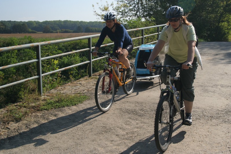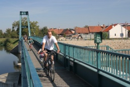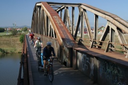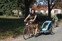 Studenú rannú rosu vysušili lúče slnka. Intenzita tepla dávala tušiť pekný deň. Nesilili sme vstávanie, hoci prvé decká boli hore už o pol ôsmej. Nevedeli sme totiž, akú náročnú etapu pre nás pripravil Vojťas. Neriskovali sme vyčerpanie, radšej sme v kľude natlačili do hlavy všetko, čo sa dalo zjesť. Pred jedenástou opustila bohatierska skupinka chatovú základňu. Trvalo totiž istý čas, kým sa bicykle dali do poriadku, dofúkalo X kolies a dotiahlo Y matiek a skrutiek. Po ceste sa k nám pripojila Vojťasova sestra s mužom. Trasa spočiatku viedla nenáročným terénom okolo jazera a poľnou cestičkou sa zaborila do lesa, aby sa opäť vynorila a cez železný most prešla ponad Baťův kanál. Pri rozcestníku, s mapou okolia, preplávala prvá motorová loďka. Popri kanáli s vodnými vzdúvadlami viedol cyklistický chodník. Na poludnie sme sa cez Železničný most dostali späť na druhý breh. Elka pri zjazde z mosta nezvládla koordináciu brzdenia a rovnováhy a ochutnala cestný lišaj. Ostatní sme usúdili, že je zrejme čas ochutnať niečo iné a zaparkovali v malej reštaurácii s výhľadom na kanál. Decká si čakanie na objednané jedlo krátili v pieskovisku, my popíjaním tradičného českého čapovaného oného. O druhej sme sa pobrali ďalej. Mierne kľukatý chodník kopíroval brehy a prirodzene zapadal do prostredia. Miestami sa zúžil a priklonil bližšie k hladine, aby podliezol most ponad kanál, inokedy sa rozšíril pri plavebnej komore s domčekom z pálených tehál. Pozorovať vplávanie lode, napúšťanie a následné otvorenie komory bolo relaxom aj technickým ponaučením zároveň. O tretej sme to otočili naspäť. Ja, s Riško v prívese, a Zdenka sme valili nazad, aby som ešte v ten večer stihol stredoškolské stretnutie po 15. rokoch. Ostatní bohatieri a hlavne drobci začali postupne odpadávať. Tých kilometrov bolo na nich až príliš. Pre Zuzku s Alžbetkou musel Janči dokonca autom prísť, čo boli tak zmordované. Kilometer pred chatkami sme stretli Anténku s Romi. Prišli na večer a zajtrajšiu etapu. Sadol som do auta a fičal z Uherského Hradišťa cez Trenčín až do Martina.