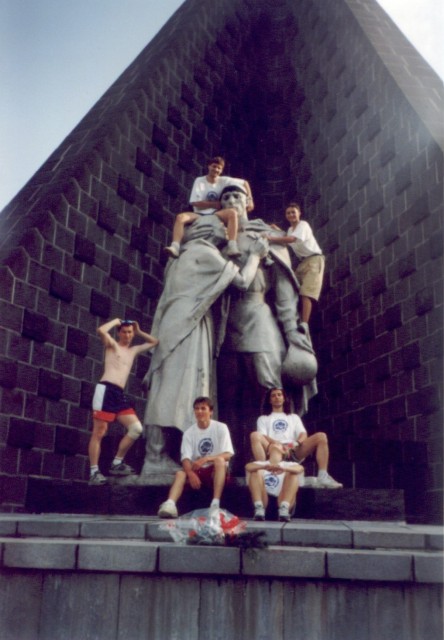 Skonštatovali sme: „Dosrali to ruskí velitelia.“ Na soche pamätníku sme našli retiazku. Dano a ja sme vyliezli tej soche vojaka na hlavu a dali mu ju na krk. |