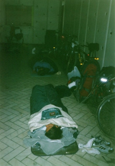 Prišiel chvost. Celý. Asi štyria išli zháňať nocľah, myslím, že Reno, Emo, Zdenka a Komando. Oproti tej zastávke bol dosť veľký hotel, ale nemal zmenáreň. Najbližšia zmenáreň bola vzdialená 50 km. Ale aspoň bolo v recepčnej sále teplo. Asi o hodinu sa vrátili ostatní, že vybavili nocľah v stodole – 3 zlote/osobu/noc. Dobicyklovali sme do tej maštale, rozbalili caky-paky, spacáky, aby sme si zdriemli. V tej stodole bol veľký prievan. Bolo ho trocha cítiť aj cez spacák. Komando vymyslel zlepšovák – zahrabať sa so spacákom pod slamu.