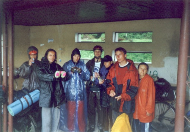 Nw. Lupkow – železničná stanica s čakárňou. Aha, tak tu sú všetci bohatieri. V čakárni stanice je nás osem. Tá čakáreň mala dvere a okná smerom na perón. Jedno sklo na dverách bolo vybité. Vo vnútri bolo zopár lavičiek, na ktorých sa niektorí zohrievali vo vybalených spacákoch. Bolo tu ešte jedno zavreté okienko (pokladničná prepážka). Najbližší vlak ide až v nedeľu. Pôjdeme teda cez Dukliansky priesmyk. |