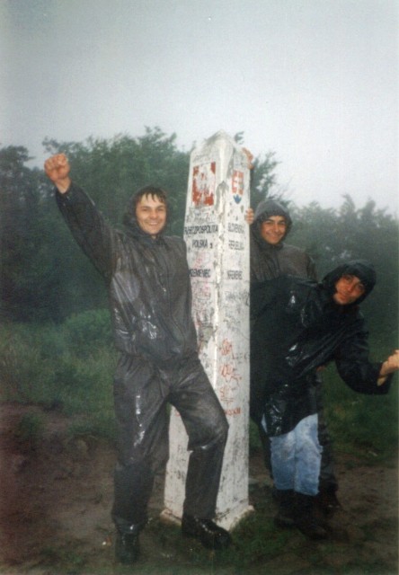 Stretli sme poľskú hliadku. Ten chlapík mal perfektný pršiplášť. Pod pršiplášťom sa mu zmestilo všetko, ruksak, bunda… Chcel od jedného z nás pas a my zasa od neho pečiatku do pasu, ale žiadnu nemal. Tak sa mi aspoň podpísal do denníka. Mal aj vysielačku a chcel sa kamsi ozvať (asi oznámiť našu prítomnosť). Bohužiaľ bol mimo dosah. Odpísal si údaje z Danovho pasu. Ten chlapík bol celkom milý. Povedal nám, že sa chystá na cyklotúru na Slovensko. My sme sa samozrejme pochválili, že sme tu v Poľsku na bicykloch. Ďalej sme sa od neho dozvedeli, že v Žiline sú záplavy a že prechod cez Nw. Lupkow je len železničný tunel. Naučili sme sa ďalšie slovíčka: špivor = spacák, rower = bicykel.