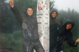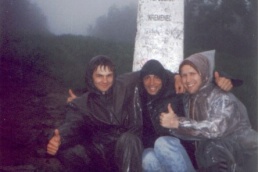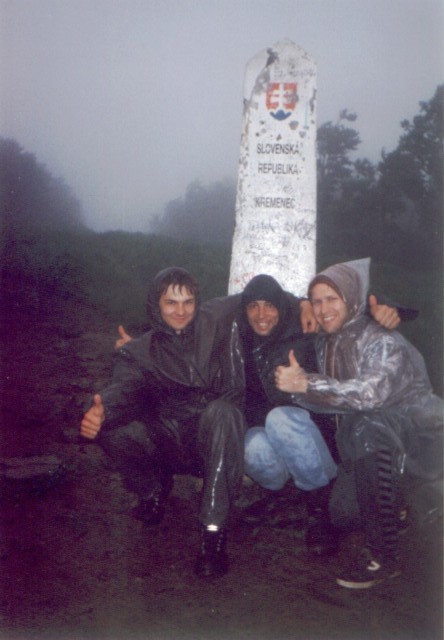 Krzemieniec Hurááá! A sme v cieli. Viditeľnosť cca 60m. Reno vytiahol foťák a odfotili sme sa. Dano vytiahol druhý citrón (každému po 1/4) a čokoládu. Čokoládu sme zjedli na Slovenskom území. Keď sme sa vracali späť, tak sme stretli toho istého pohraničiara. Sedel na kameni, čítal si knižku a pil herbatu. Dokonca nás ňou ponúkol. Dano mu zasa dal trochu z Horalky. |