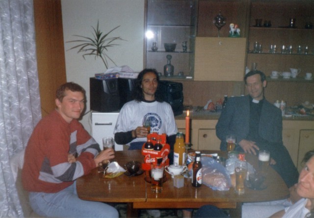 Dano a Zdenka vybavili nocľah. Katolícka fara, teplota vzduchu vo fare cca 24°C. Super! Hneď sa zdvihla nálada. Pán farár kvôli nám zapol radiátory, poskytol nám varnú kanvicu na čaj. Komando natiahol svoj špagát, ktorým si vždy uväzoval ruksak o nosič bicykla, pozdĺž chodby, aby sme si na tom usušili veci. Počas jedenia Reno hral na klavíri (fakt pekne).
