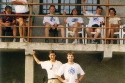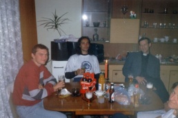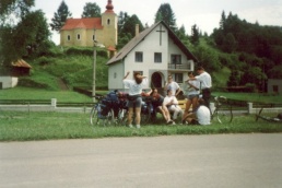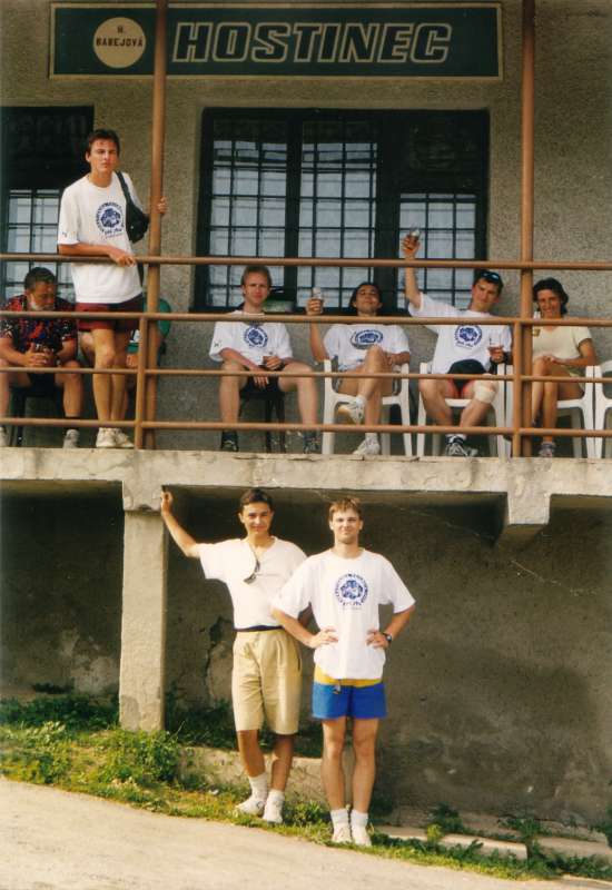 Po ceste sme ale stretli ostatných bohatierov – Zdenka, Anka, René, Domino, Emo, Komando, Vojťas, Helena (Vojťasova frajerka). Už sme desiati. Dominova starká urobila guláš. Mňam! Dlho potom sme nemali poriadnu stravu. Už vieme (Dano a Slavo), prečo tí bohatieri tak meškali:1) Domino si na pumpe (pár kilákov za Kysakom) kompresorom fúkal duše a roztrhlo mu pri tom ráfik zadného kolesa. Odviezol sa teda do Prešova autobusom a kúpil si celé koleso. Aspoň si bohatieri pozreli Prešov. 2) Domino sa zasa postaral o program. Na Domašu išli bohatieri skratkou. Na mape znázornená skratka mala jednu časť čiarkovanú. Tá mapa bola turistická. Obišli teda Giraltovce a po prerážaní cez pole s obilím a harmančekmi sa zastavili pri Domaši. 3) Po náročnej trase sa bohatieri usadili v krčme „Zlatá rybka“. |
