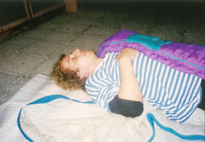 Bol som (a nie len ja) uzimený, ale už sme našli nocľah. Akási škola za 80,- Sk za osobu. Ráno o 7:30 musíme vypadnúť. Riaditeľka nám najprv ukázala, kde nájdeme teplú vodu, plynový sporák, matrace, umývadlá, záchod… a potom, keď sme boli už v spacákoch, tak povedala, že 8 zlotých na osobu. Zloté však všetci nemali, tak sme sa dohodli na 80,- Sk za osobu. Prezliekli sme sa do suchého a mokré veci dali usušiť. Niektorí si zdriemli a niektorí sa len pozohrievali v spacákoch. Mali tam obrovský plagát M. Jacksona. Večer som išiel s Danom do kuchyne, aby sme sa najedli. Anka si tam akurát dorobila akúsi dobrotu (nejaké zemiaky) a polievku. Domino si tam tiež ukuchtil polievku. S Danom sme si urobili čaj a dve sáčkové polievky. Ale ako sme zistili, aj sáčkovú polievku treba vedieť uvariť. Sáčok s príchuťou, ktorý bol súčasťou polievky, sme tam celý vyžmýkali. Polievka bola teda neuveriteľne pikantná a moc nepomáhalo ani množstvo chleba, ktoré sme k nej jedli. Našťastie prišiel hladný Reno. A keďže je zvyknutý na pikantné jedlá, tak to spolu s Ankou zjedli. Ja a Dano sme si rozdelili polievku, čo Domino už nevládal zjesť. Anka zasa nedojedla svoje zemiaky, takže sme to spoločne po nej dojedli. Myšlienka dňa: „Nie je dôležité, aby si nezmokol (nezmokla), ale aby si fungoval (a) aj mokrý (á)!“ Zajtra vstávame o 5:30. Dobrú noc.