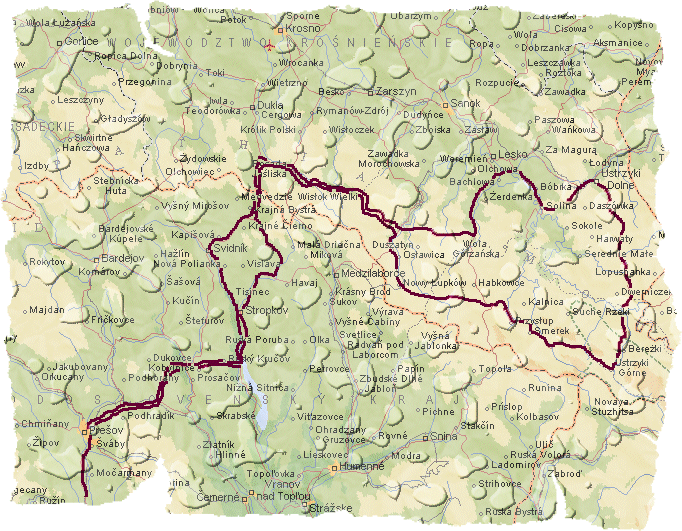 Prešov – Stropkov – Dukliansky priesmyk – Komańcza – Hoczew – Krzemjenec – Czarna Górna – Stropkov – Domaša