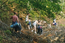 Umývame si bicykle od blata v jednom potoku, čo križuje cestu. Koniec prerážania (cca 2,5km/1h 12min). |