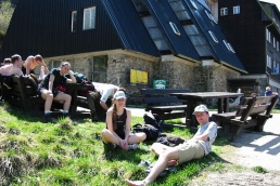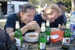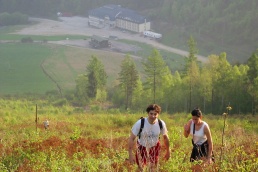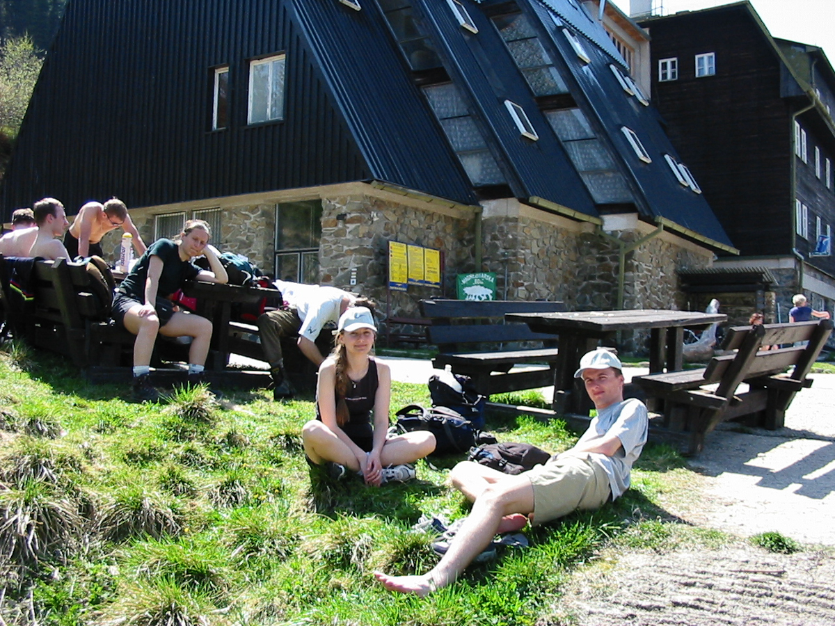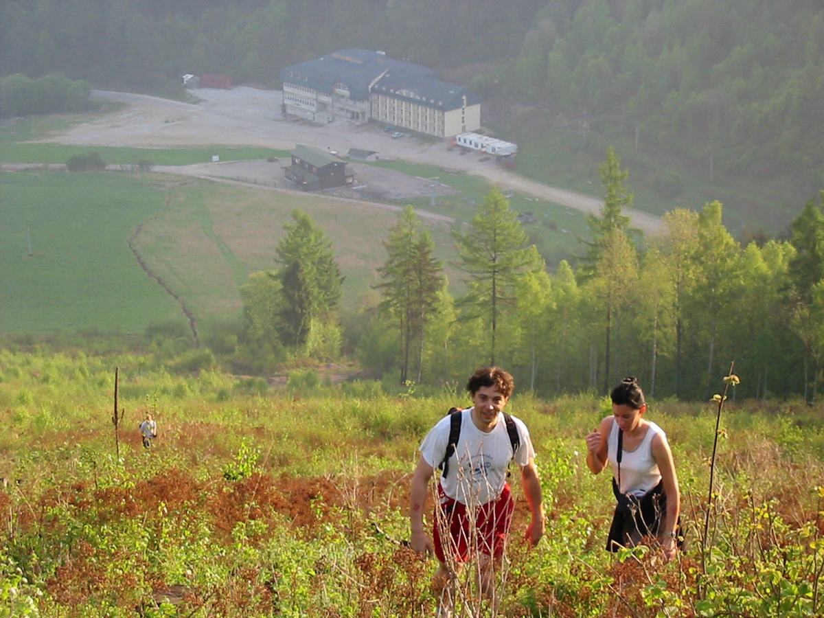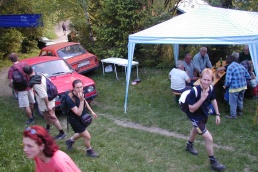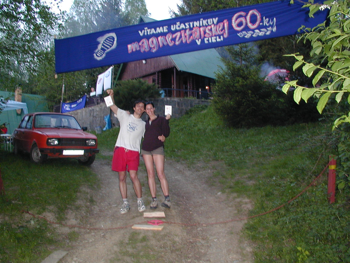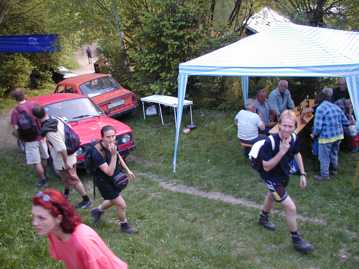 Ráno sme boli už pár desiatok minút pred oficiálnym začiatkom hore. Nedalo sa spať a tak sme pobalili veci a prichystali sa na pochod. Komando sa bránil svetlu nepríjemnej neónovej trubice spacákom tak, že sa takmer udusil. Alenka použila donucovacie hmaty a prinútila ho vstať. Ráno ešte pricestovali Dominik s Dankou. Tí boli rozhodnutí prejsť aspoň do polovice trasy. Na štarte sme sa dozvedeli, že batožinu nám autom neprevezú a ani ju nikdy neprevážali. To bolo fakt dosť dobré, pretože som na predchádzajúcich ročníkoch takýto problém nikdy nemal. Ujo bol strašne tvrdohlavý a bolo ho treba takmer na kolenách prosiť, aby bol taký láskavý a splnil si svoju povinnosť. Na štarte padol vhod čaj, jogurt a nejaké ovocie. Vyrazili sme do ešte chladného rána. Nasledovalo zahrievacie stúpanie zjazdovou dráhou lyžiarskeho strediska Plejsy. Chata na Plejsoch bola ideálnym miestom na raňajky. Dúšok piva hneď zrána povzbudil každé svalové vlákno a prebral ho k životu. Slno vyšlo nad obzor a udreli prvé horúčavy. V Gelnici sme nenašli pečiatkovú kontrolu. Pred stúpaním k chate Erika sa od nás takmer odpojili Danka s Dominikom, ale vidina odznaku a diplomu z pochodu ich hnala ďalej. Konečne chata. Príliš málo ľudí na 25. ročník pochodu! Od organizátorov sme sa dozvedeli, že chata je zatvorená z neznámych príčin a že sľubovaný druhý čaj už nemajú. No čo, aspoň že mali odznačiky pre Danku a Dominika, ktorí nás opustili. Stará štreka na chatu Lajoška sa neniesla v žiadnom znamení. Hnala nás túžba po pive. Cestou Dancúľ spomenul, že už sa asi šesťdesiatky nezúčastní, pretože mu to pripadá stále rovnaké, ale tak to už pri diaľkových pochodoch býva. Na Lajoške sme stretli Tiborovu mamu, ktorá nám len tak mimochodom oznámila, ze tohto roku bol cieľ pochodu premiestnený o pár kilometrov ďalej k bývalej chate TJ pri jazere Ružina. Nebyť jej, nikdy by sme asi nenašli svoje autom prevezené veci. Zmenená trasa sa od pôvodnej odklonila už pár metrov od chaty. Alenka tak nateraz nezažije muky prekrásnej šotoliny záverečnej zjazdovky, ktorá sa vryla do pamäte a kolien mnohým z nás. Do cieľa nás mali doviesť žlté pásky, ktorými boli spočiatku oblepené takmer všetky stromy. Časom sa akosi iniciatíva lepičov stratila a na miestach križovatiek chodníkov chýbala. Pre mňa a pre Zdenku sa pochod zmenil na orientačný beh. Pobehovali sme z chodníka na chodník a tú žltú pásku nie a nie nájsť. Ostatní mali to šťastie a nezablúdili. Z lesa sme sa dostali až po západe slnka. Už sme ani nevnímali bolesť. V širokom kraji, bez mapy a kompasu ale so 4 GB diskom sa človek len ťažko zorientuje. V diaľke na poli sme zahliadli dedinského motorkára. Stopli sme ho, aby nám povedal, kde sme a kam máme kráčať. Povedal. Prešiel mi mráz po chrbte, keď som uvidel, že tam, kam ukázal, ani nedovidím. Nakoniec, prečo nie - zakončiť 60 kilometrový pochod 7 kilometrovým pochodom. Konečne páska. Už sme sa jej nepustili. V cieli sa nám rehotali, že kade sme to vlastne išli. Večer kapustnica, pivo a hruškovica. Nasledoval rum a spoločenské hry. Kto prehrá - pije. Až na druhý deň som sa dozvedel, kto ako hral, kto ako prehral a kto podvádzal a neprehral. Hry typu "Podejte to dál", "Na! Čo?", "Eee! Eee? Eee!" boli vítaným spestrením, ktoré úspešne napomáhalo likvidácii prebytočného alkoholu. Taktiež oslava Huskyho 8. narodenín a narodenín Tamarky nedali na seba dlho čakať. Na záver ešte "Jede jede mašinka" a pamäť mi prestala ukladať akékoľvek informácie o okolitom časopriestore.