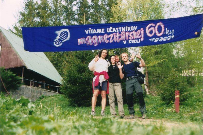 Keby sa mi na poslednú chvíľu nenahlásili Alenka s Komandom, asi by som išiel na šesťdesiatku sám, ale možno by som na žiadnu šesťdesiatku nešiel. Nuž čo, obetovali sa a ja som im bol za to vďačný - veď išlo o moju PIATU účasť. Dohodli sme sa, že pôjdu autom a mňa vyzdvihnú vo Vrútkach. Po malých nezdaroch s mobilnou navigáciou ma nakoniec našli. Cieľ bol jasný - stihnúť posledný možný vlak z Košíc do Krompách. Uháňali sme preto nedostavanou diaľnicou, čo to len šlo. Pár prestávok na občerstvenie, ale inak žiadne prestávky. Za Braniskom sa strácala kvalita cesty, značenie, osvetlenie a tak sme chvíľami ani netušili, či nejdeme náhodou v protismere. Už sa aj zotmelo a Košice stále v nedohľadne. Rýchlosť auta teda úmerne s utekajúcim časom stúpala a zastavila sa na 220 km/h. Konečne sme zaparkovali pred McDriverom. Tu nám snáď auto neukradnú. Pobrali sme bágle, spacáky a bežali na vlak. Stihli sme to 5 minút pred odchodom. V Krompachoch na stanici sme sa ešte 'radili' s organizátorkou Vierkou, potom aj sami. Vyrušili sme nechtiac tetu, ktorá ráno predáva lístky a potrebovala sa vyspať. No čo, my spať nepotrebujeme. Vyšli sme na perón, hebko dopili fľašu, keď sa zrazu rozpršalo. Hukot padajúcich kvapiek na zhrdzavenú strechu stanice prehlušil prechádzajúci nákladný vlak. No zbohom, to bude pochod.Deň 2. (sobota)