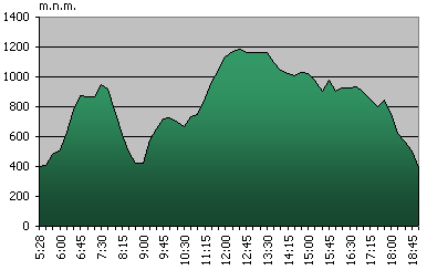 Ráno je múdrejšie večerať, no ani na večeru neostal čas, nieto ešte na raňajky. Ležérne sme sa začali baliť. Vedeli sme, že keby tu bol Emo, bol by určite posledný, ale keďže vždy všetko stíhal spoločne s nami, upokojili sme sa. Mariačka nám zverila kľúče a ako poslední sme miestnosť aj zatvorili. Na štarte v hale sme podozrivo jediní, len traja organizátori ponúkali čaj a jogurt. My snáď ten hlavný pelotón nikdy nezastihneme! Vyrazili sme o 5:28. Včera po ceste veru aj popršalo a tak dúfame, že dnes nezmokneme. Zatiaľ tomu nič nenasvedčovalo. Prvú prekážku v podobe zjazdovky na Plejsy sme zdolali v pomerne krátkom čase a nalačno. Nad hustou hmlou a tmavým lesom začalo svitať. V drevenom altánku sme rozložili jedlo, spotené veci, ponožky a suché veci na prezlečenie. Slnko sa opieralo do teplomera, ale ten sa nenechal oklamať a ukazoval si stále svojich konštantných 13 stupňov. Komando, prezlečený do modrých krátkych elasťákov a bohatierskeho trička, nedbal na jeho varovanie a silným horúcim dychom nám spravil krásnych letných 28 stupňov. Noha svižne míňala nohu a hrebeň pomaly začal klesať až do Gelnice. Dancúľov mobil náhle zazvonil. To Dominik so ženou Dankou a malou Dominikou práve dosiahli chatu Plejsy a ozvali sa nám. Bolo však jasné, že sa už nestretneme, keďže končia v Gelnici. Hneď za mostom ponad jednokoľajku, popri starej obývanej plechovo-drevenej rómskej búde s novým satelitom, začína príjemné strmé stúpanie až ku chate Erika. Slnko sa do nás poriadne oprelo a tak nezaškodilo poriadne sa namazať detským krémom na opaľovanie nezistenej konzistencie a bielo-fialovo-modrej farby. Tohto roku sme dosiahli cestou ku chate nádherný medzičas. Veľkú časovú rezervu sme ihneď vyplytvali na hranolky so syrom, zemiakové placky a samozrejme vychladené pivo. Trocha sa zozimilo. V diaľke sa zhromaždili bohatierske mračná plné vody. Začali sme klesať ku chate Lajoška. Cesta veselo ubiehala, no chata v nedohľadne. Zvukovú kulisu dopĺňal silnejúci vietor a temné hrmenie. Takmer to vyzeralo, že sa dážď na nás poriadne vyzúri, našťastie chýbalo len necelých 100 metrov ku chate a po krátkom šprinte sme boli v suchu. Pri teplej polievke, lángošoch s cesnakom a pivom sme prečkali lokálne prehánky alebo búrky. Chata bola plná roztopašných detí, poobliekaných v pestrofarebných pršiplášťoch ázijskej výroby. Nejako sa nechcelo ísť ďalej, aj pršať prestalo, ale my dlho nič. Napokon predsa len. Za chatou sme uprostred lesa na rázcestí narazili na podivne vyzerajúcu uzavretú cestnú rampu. Váhali sme, kade ďalej, ale túžba poznania zvíťazila nad pochybovačnosťou. Pre istotu sme rampu otvorili a zatarasili tú druhú cestu, čím sme o správnej voľbe smeru už úplne prestali pochybovať. Do cieľa pri vodnej nádrži Ružín sme došli aj bez použitia techniky chôdze známej ako „strojčekovanie“ už o 18:52. Neuveriteľné je, že sme neboli poslední a že sme stihli aj záverečnú tombolu. Kapustnica, čaj, litrovka rumu na sekeru a zábavné spoločenské hry všetkého druhu dotvorili atmosféru pokojného večera. Požičaná gitara zahrala bohatiersku hymnu aj Ptáka Loskutáka. Komando s Alenkou zaľahli skôr, ja s Dancúľom sme ešte ostali spievať a hrať v kolektíve košických turistov. O druhej nadránom začalo pršať a tak sme sa uchýlili do chatky a prespali v duchnách.