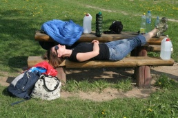 Spím, či bdiem? Čo ten René bútorí? Chlape, zaľahni a spi. Čo? Ráno? Koľko si toho večer popil? Ti hovorím, zaľahni a spi. Nemôže byť už ráno! Ani nebolo, v deň pracovného pokoja sa 4:00 považuje za neskorú nočnú hodinu. Keďže sme mali v pláne stihnúť vlak o piatej, museli sme vstať. A zase ma prepadla tá myšlienka, toto si dievča trošku prepískla. Lenže môj vnútorný čertík už bol hore a hnal ma do toho. Teším sa, výstup na Plejsy bude o hubu, ale keď nezažiješ, nevieš. Vlak sme stihli v pohode, len s jednou stopkou na plný plyn. Vo vlaku sme si dali šlofíka a ja som si zaželala na chvíľku upadnúť do kómy. Také dva roky spánku by ma postavili na nohy. Vystupovať, Krompachy, konečná! Tak to určite, tu to len začne. Zápis na stanici, jogurt a croissant, náplasť na nohy a šup na cestu. Hneď za prvou zákrutou stretávame tri ženy, devy z Popradu, s ktorými sa vydávame naprieč Volovskými vrchmi. Mierne stúpanie, v pláne je trasa po modrej, takže to by nemal byť brutus. Za nami nikto, pred nami nikto, po pravej strane nás obiehajú cyklisti. Nechápem, kedy ostatní vyrazili, keď my sme vraj poslední. Nevadí, aspoň ma to ženie vpred. Len sa ma nič nepýtajte, nehovorte na mňa, fungujem na kyslíkový dlh. Modrá značka sa začala kľukatiť lesom, všetci sme sa sústredili na vlastné dýchanie, až jedna z troch bludičiek zišla z trasy. Od tej doby som sledovala každú značku a spoliehala sa len na seba. Keď som pred sebou zbadala chatu na Plejsoch, srdce zaplesalo. Na chate Hutník sme sa pekne zdržali, ale stálo to za to. Rasťovi nezabudnem geniálny nápad s cesnačkou. Tá ma postavila na nohy, dodala energie, bludičky nám zatiaľ zdrhli. Zostup do Gelnice bol fajn. Teplota vzduchu rástla, postupne sme zhadzovali veci zo seba. V Gelnici sme najprv hľadali checkpoint, ale nakoniec sme sa rozhodli, že kašleme naň. Kúsok nad Gelnicou sme zbodli fasované jogurty a vyrazili na cestu. Ďalej po modrej, ďalšie stúpanie, to čo sme nastúpali na Plejsy sme zišli do Gelnice, takže znova odznova. Modrá značka sa začala v lese vytrácať, naďabili sme na bludičky a blúdili sme krížom-krážom lesom spolu. Chalani ma dostali parádnou znalosťou mapy, Vinnetou udával výškové metre a s Old Shatterhandom spoločne študovali mapu. Ja nejdem ani meter navyše. Smer bol dobrý, odhodlanie maximálne, ideme. Ani som si nevšimla, že opäť dosť stúpame, vetrila som ako besná kuna po značke. Vytrácala sa dosť často, pretože les bol preriedený výrubom. Z modrej sme prešli na žltú, a keď sme po dvoch hodinách blatom, malinčím a páľavou prišli k ceduľke Kojšovská hoľa 2,5 hodiny, zahmlilo sa mi pred očami. Aj Rasťo mal toho dosť. Museli sme na chvíľu zastať, poriadne sme sa vyšpliechali v horskom potoku, dali si hroznového cukru a mohli sme ísť ďalej. Keď sme dorazili na asfaltku smerom Chata Erika, hneď nám bolo lepšie. V čajovni Katka pod Kojšovkou sme dostali od organizátorov kapustnicu. Polovica trate a 2/3 náročnosti za nami, ďalej sme pokračovali po hrebeňovke zostupom do cieľa. Bludičky z Popradu to tu zabalili, a my sme išli ďalej. Zjazdovkou dole, smer Lajoška, Chata Jahodná, už si ani presne nepamätám, kade sme to išli. Nasadili sme brutálne tempo, motivácia rástla, cieľ sa blížil. Na Lajošku sme prišli už po funuse, s účastníkmi 60tky tu už nikto nerátal. Tak sme sa veľmi nezdržovali a pobrali sa ďalej. Chceli sme prísť za svetla do cieľa. Len cesta ako keby nemala konca kraja. Šľapali sme čo to dalo. Keď sme prišli na zjazdovku, o ktorej René tvrdil, že je posledná, zjavil sa nám úsmev na tvári. Spravili sme pár fotiek, dali si na čas. Cieľ už mal byť na dosah. Nebol, podľa slov náhodného cyklistu to malo byť asi 7 kilometrov na Bankov. Čo sa zrazil s koňom, čelne? René volal organizátorom, že určite dorazíme. Deviata hodina sa blížila, ale Bankov nikde. V lese sa pomaličky zotmelo, nasadili sme úžasné čelovky a polobehom sme trielili za civilizáciou. Nohy som cítila až pri krku, ani pľuzgiere nevadili, BISTRO (posledný checkpoint) bolo na dohľad. V Bistre sme padli na lavičky a nemali slov. Chalani mi priniesli misku guláša, dali sme frťana. Ešte nás čakala cesta na železničnú stanicu po auto. Taxík, stanica, návrat späť na Bankov. Ani neviem, ako sme rozložili stan, pustili si našu hymnu z mobilu a zaspali zadosťučineným spánkom.